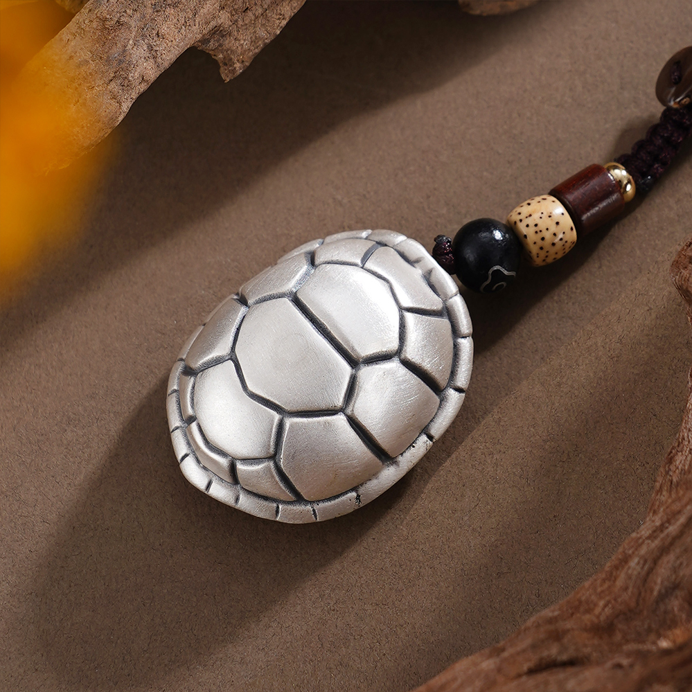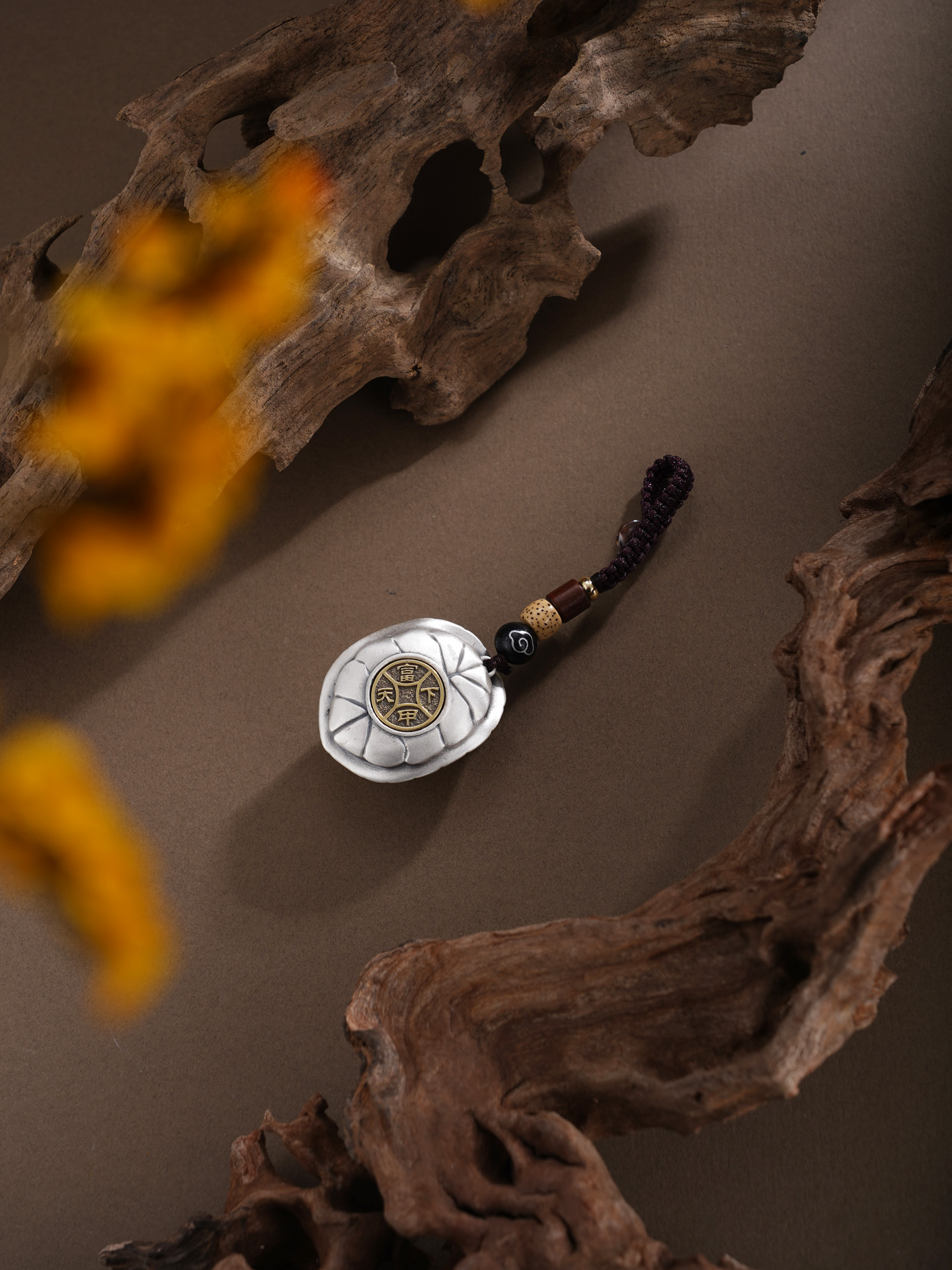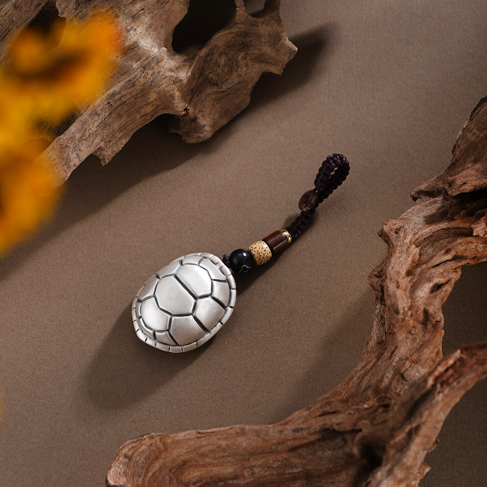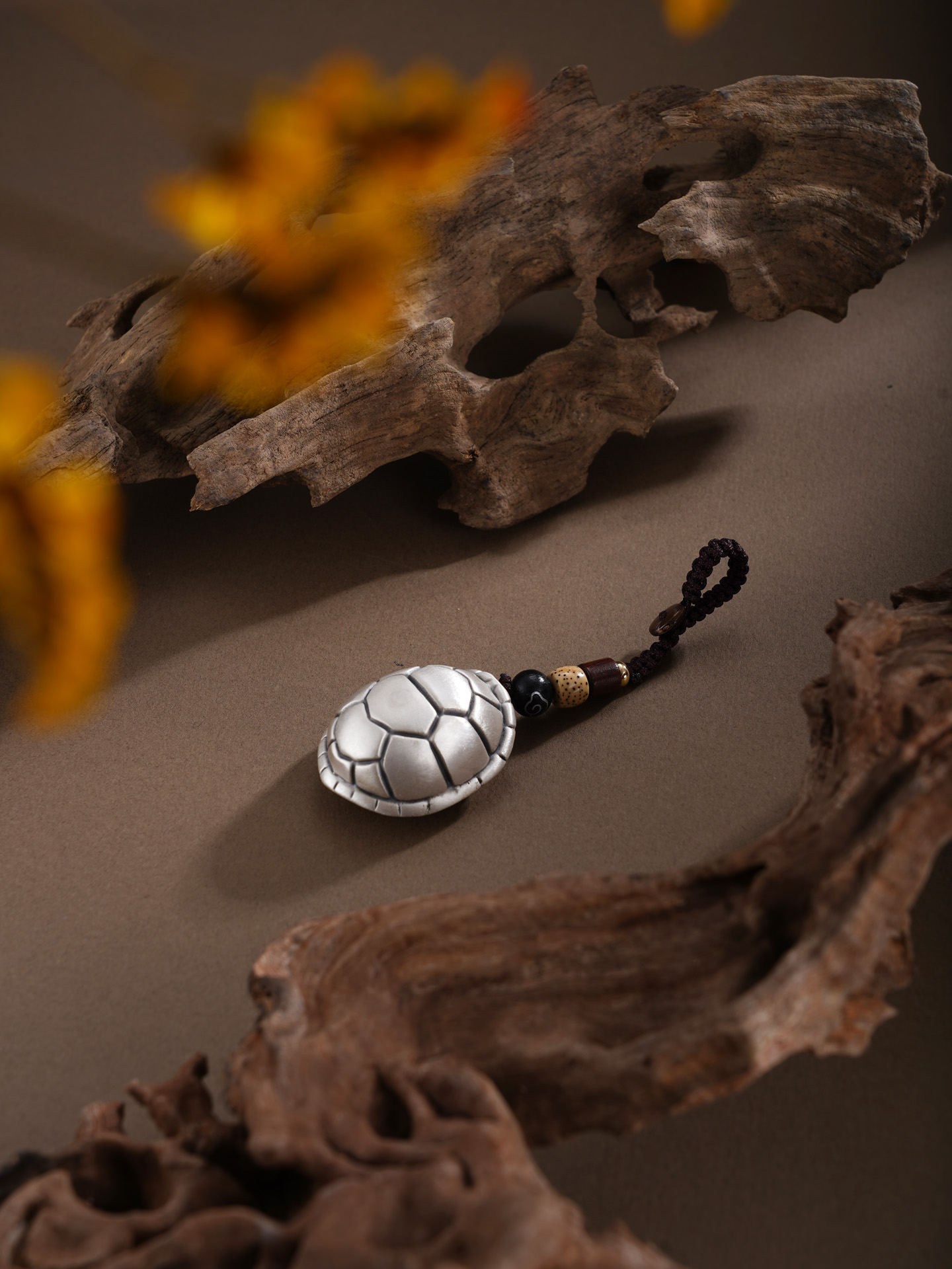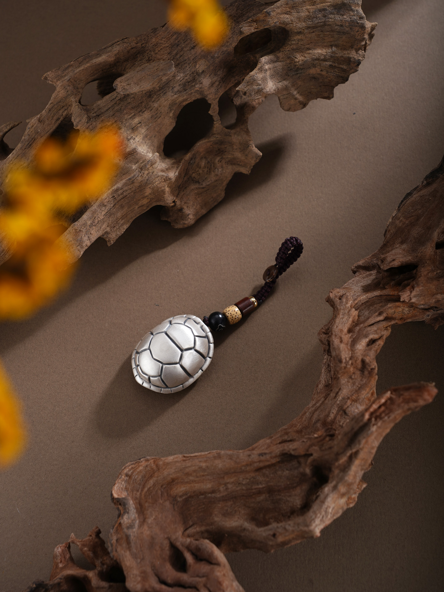 【寓意】:以纯银精雕龟壳手把件,龟象征长寿与稳固,承载“厚德载物”之智慧;下方镶嵌可转动“富甲天下”铜钱,寓意财富如轮流转,生生不息。龟壳护佑,铜钱生财,二者相融,既寄寓事业根基稳固、财富广聚。