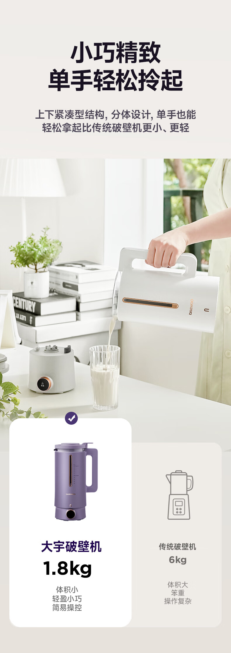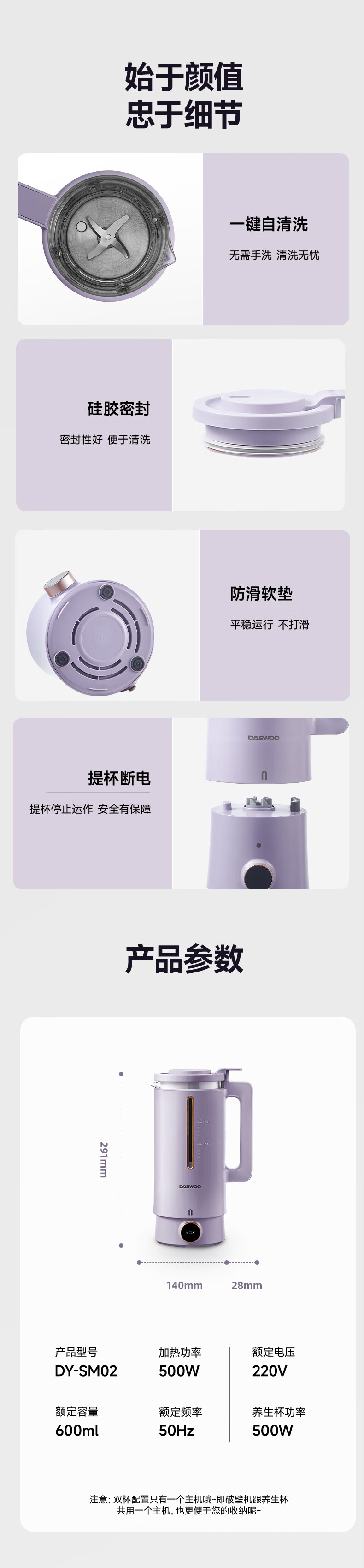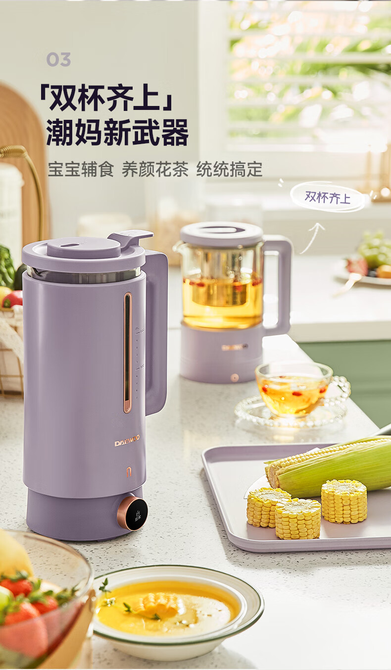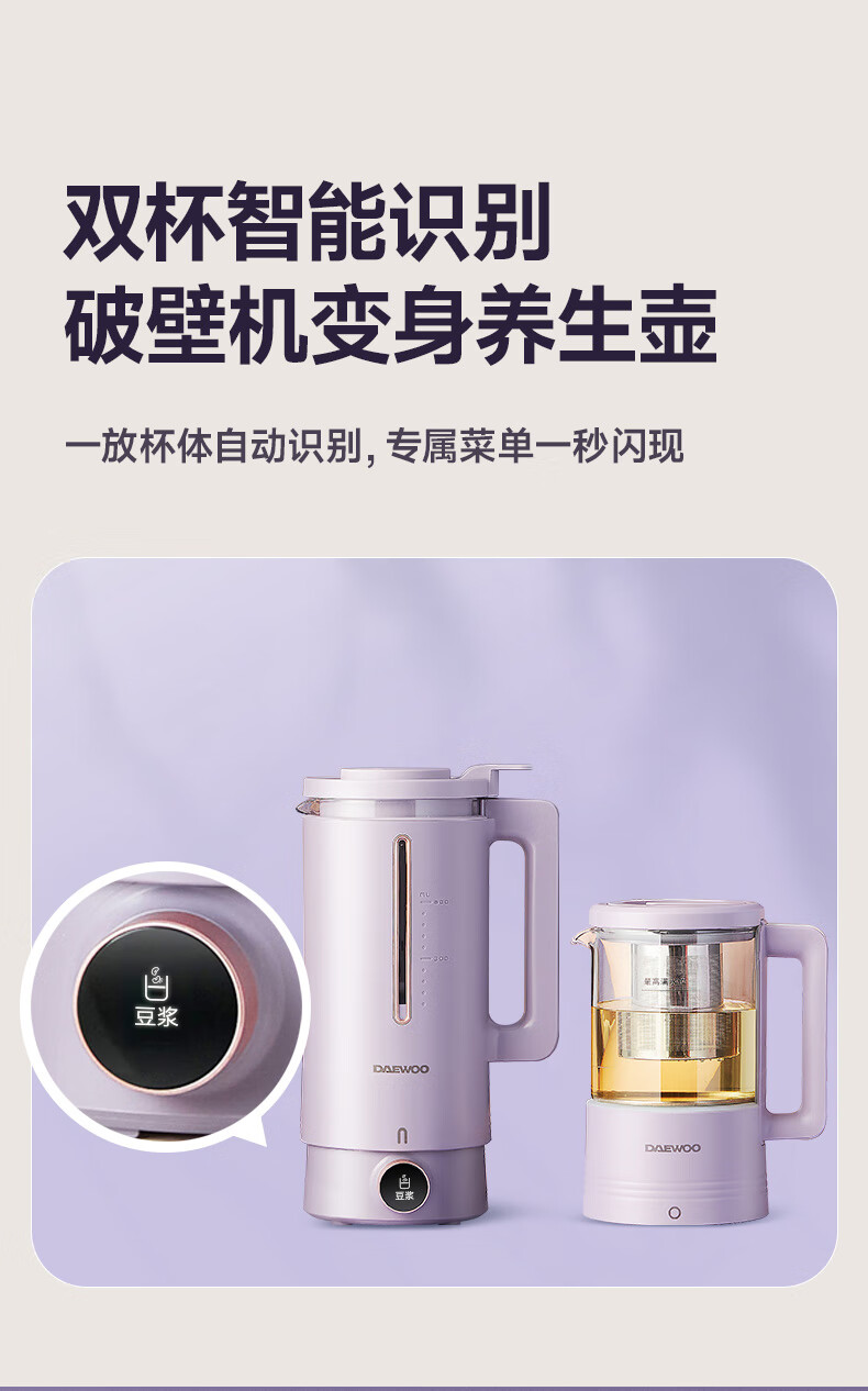 大宇 破壁机多功能豆浆机家用小型双杯智能榨汁一体料理机