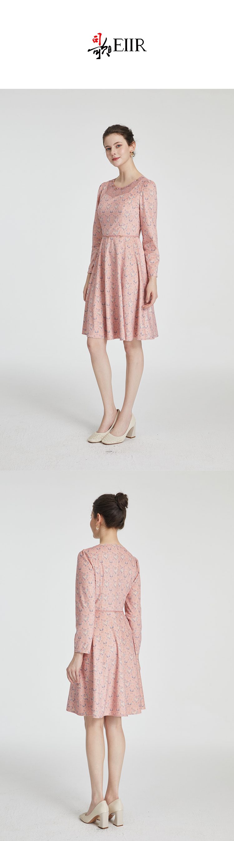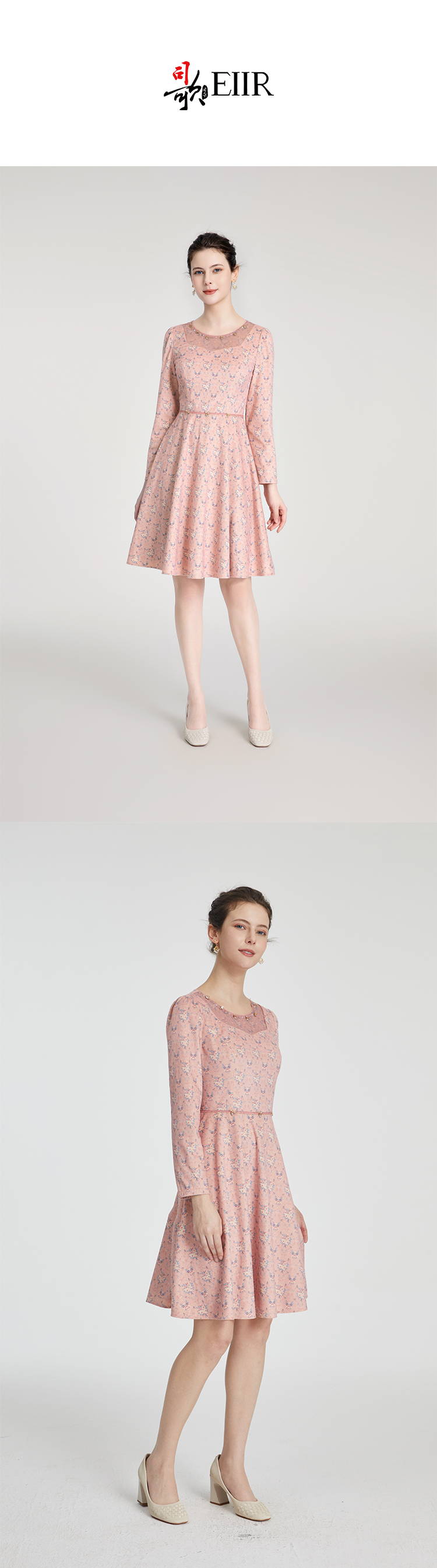 司歌冬长袖连衣裙圆领印花灯芯绒收腰A881295