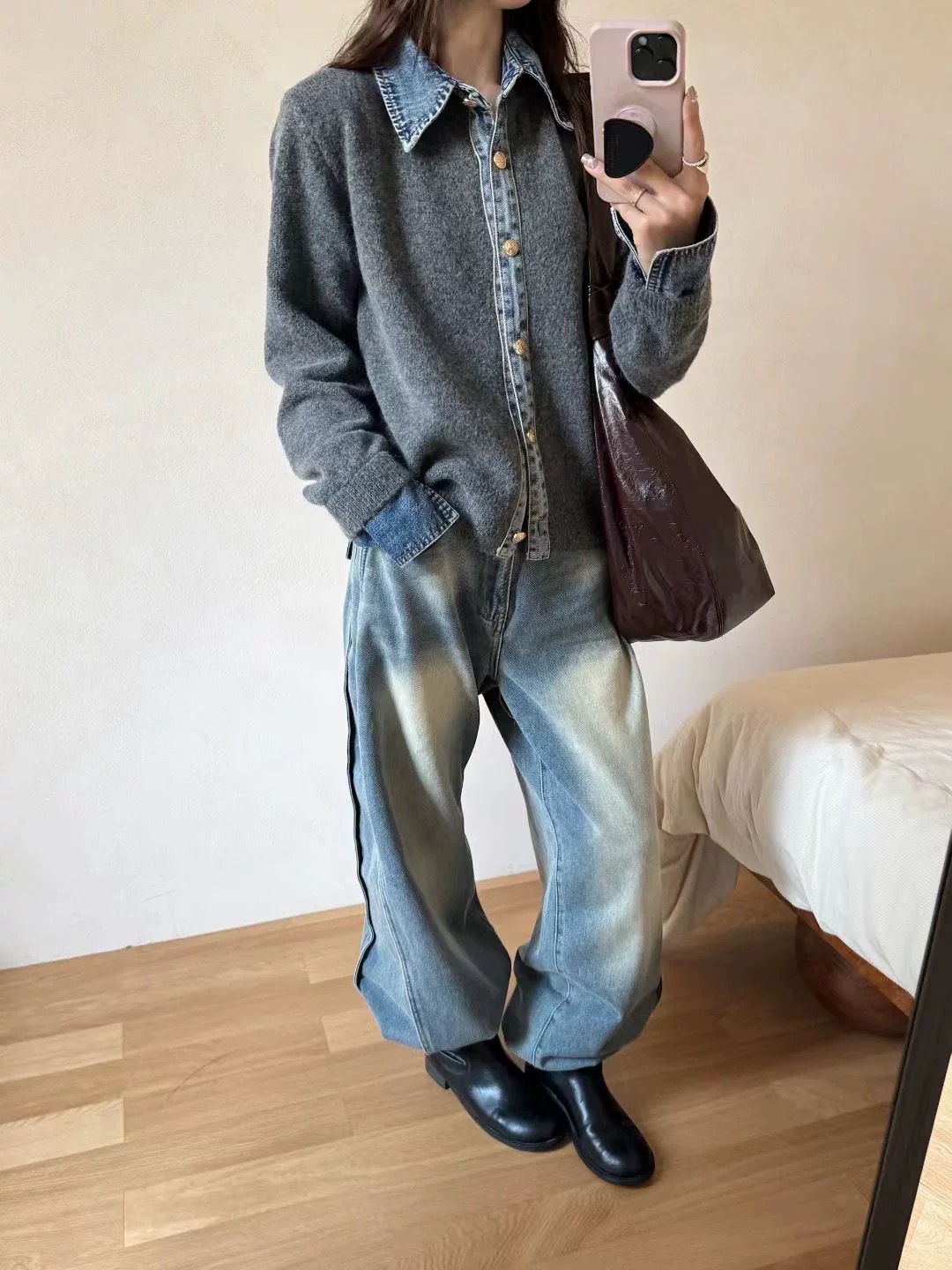 衣长 57 胸围100 袖因测量方式不同,存在3~6误差属于正常范围,针织面料有一定的弹力