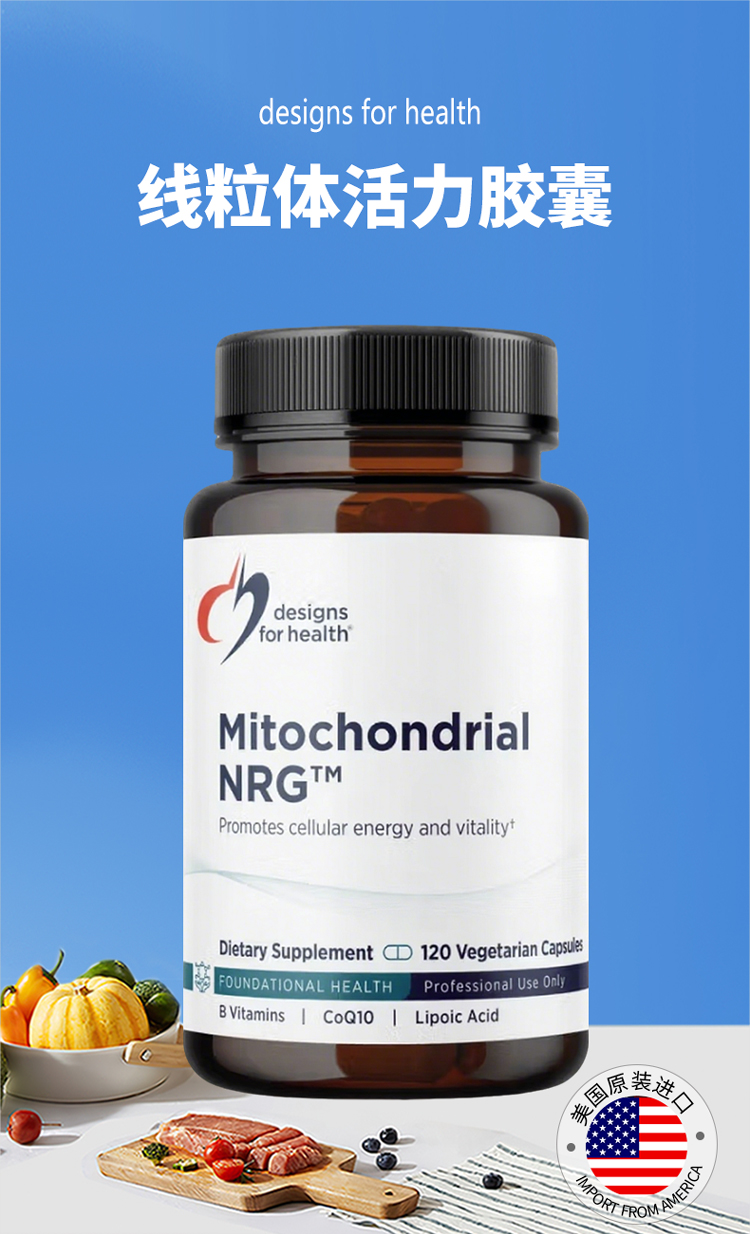 【效期至27年2月】线粒体活力胶囊 Designs for health Mitochondrial NRG 120粒/瓶