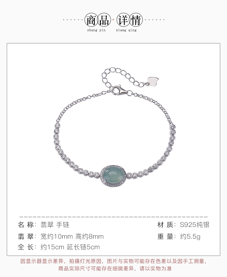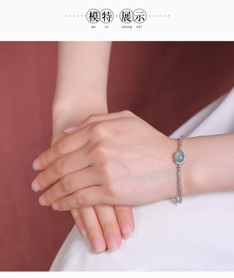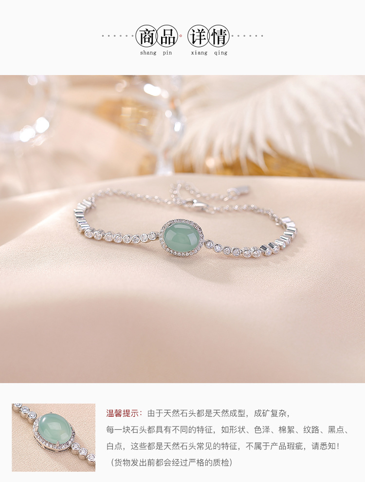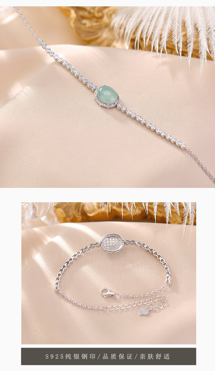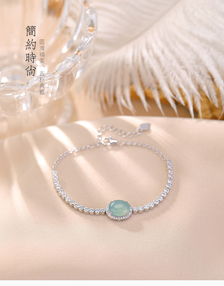 【清雾静影】蓝水翡翠S925纯银蛋面手链【CW-SL11869】