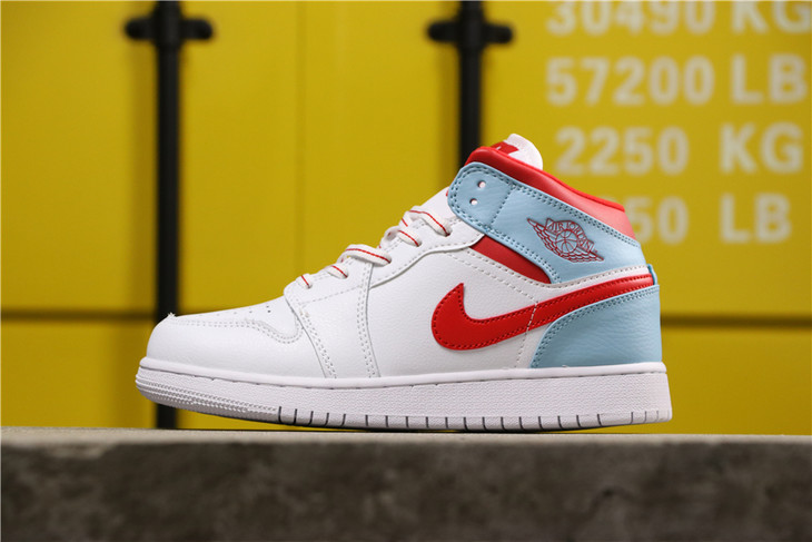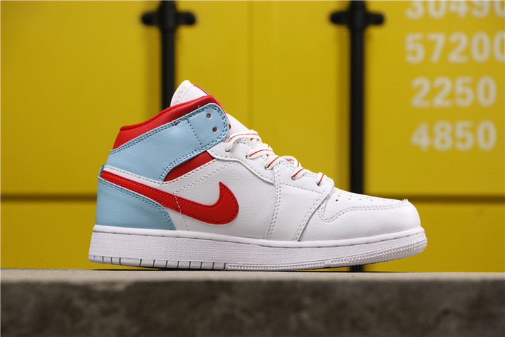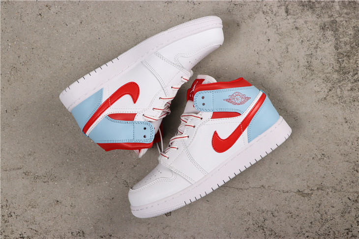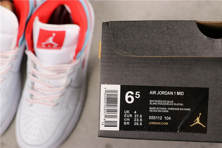 乔丹/Air Jordan AJ1 aj1 乔丹1代 乔1 乔丹1代中帮系列 Air Jordan 1 Mid GS 货号:555112-104 乔1中帮白蓝红 36-40