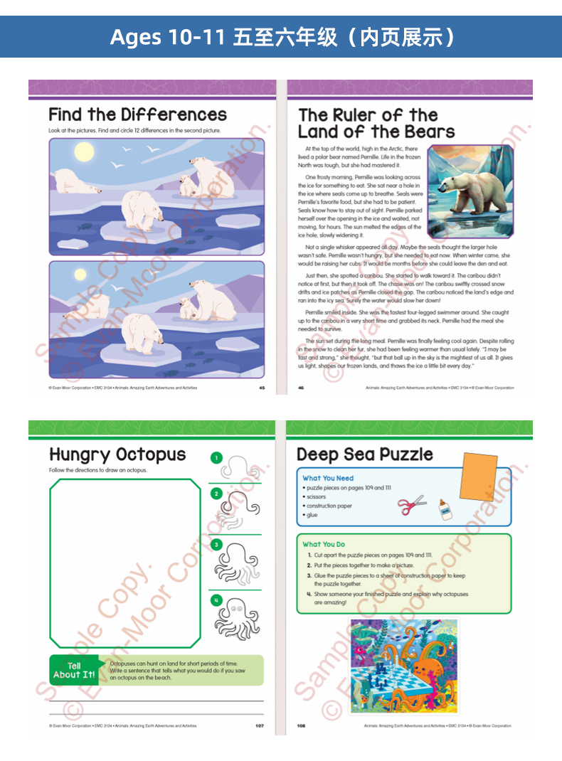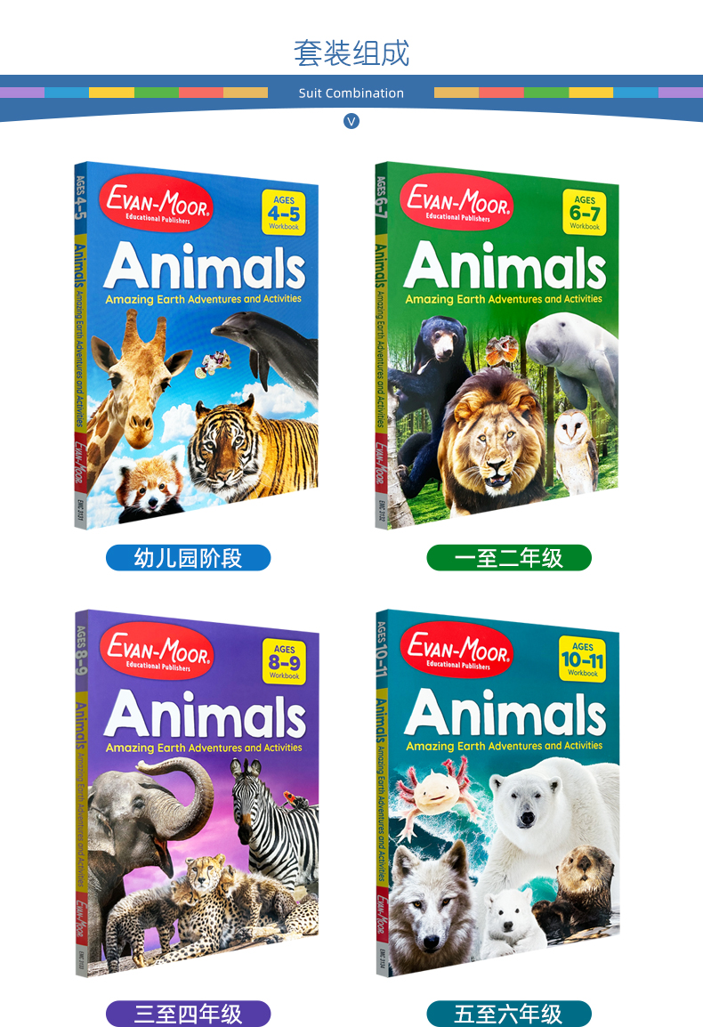 Evan-Moor Animals: Amazing Earth Adventures and Activities Set.奇妙的地球冒险 动物 4册套装