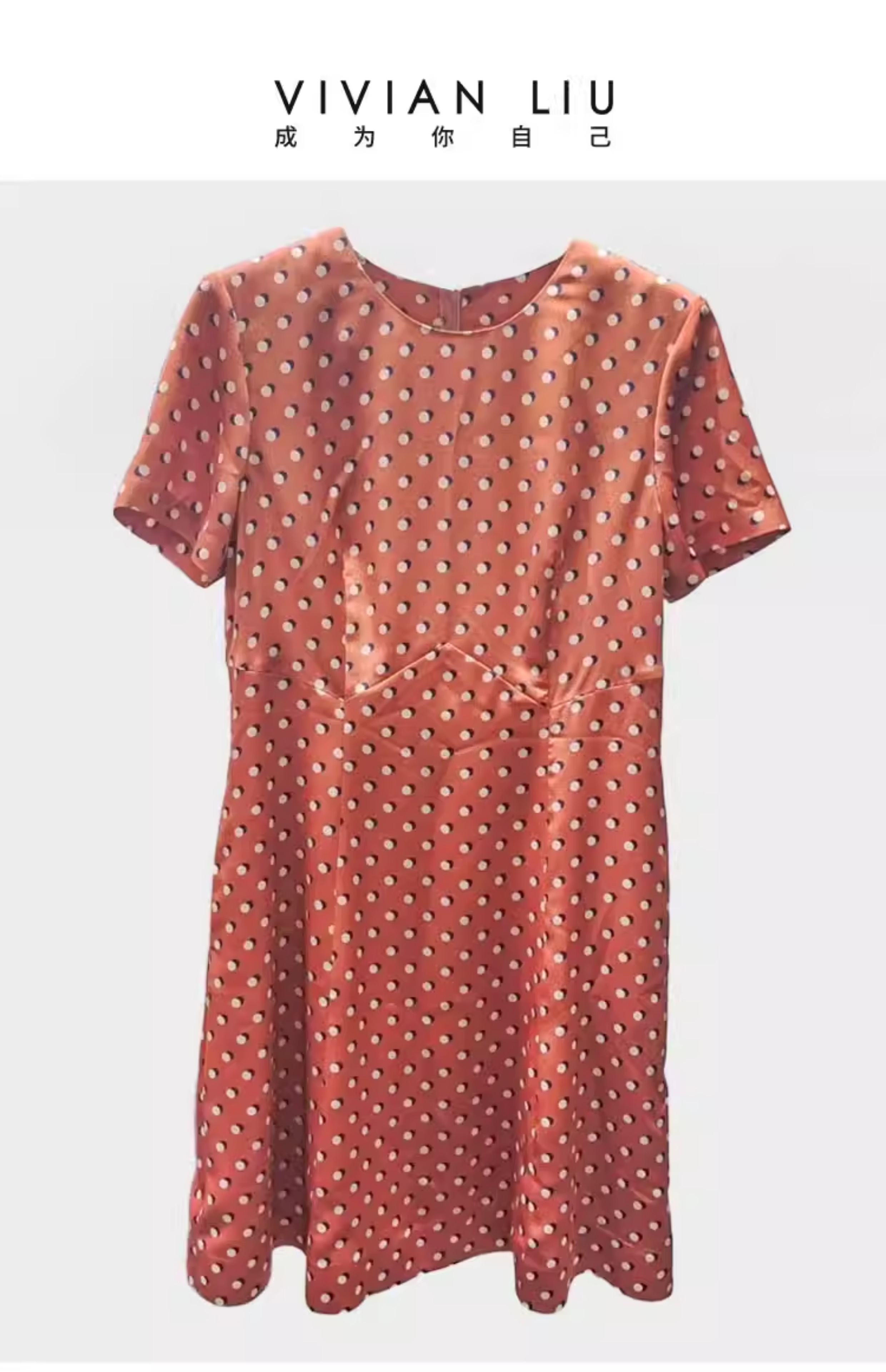 VIVIAN LIU薇薇安刘A2534101 夏季女装法式圆点收腰短袖连衣裙