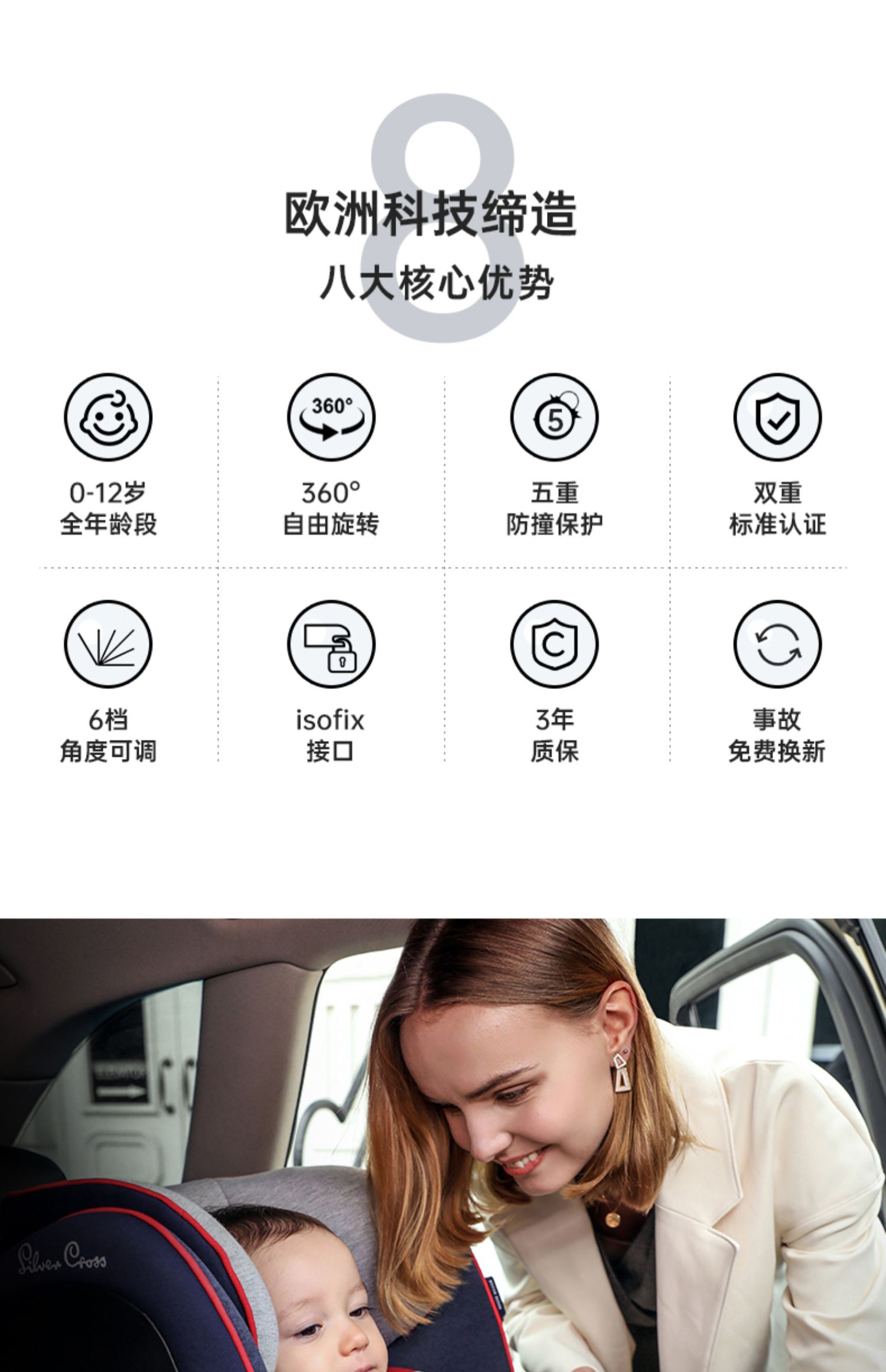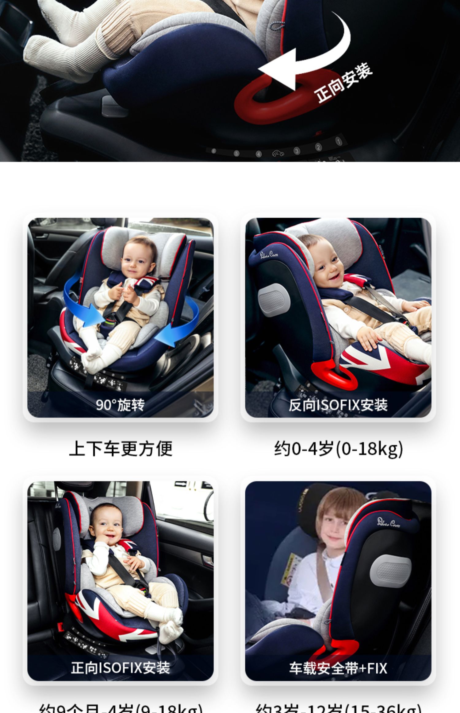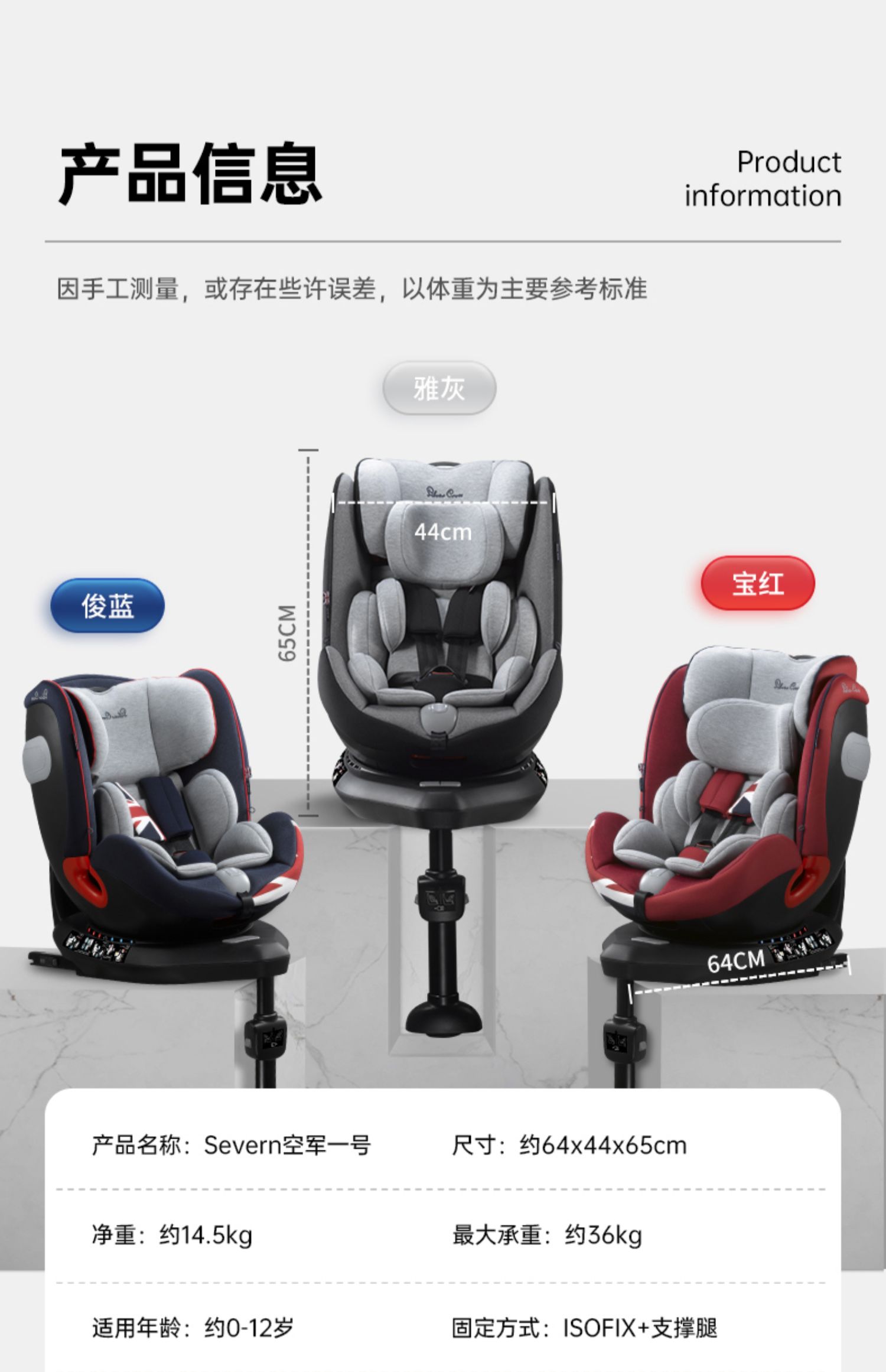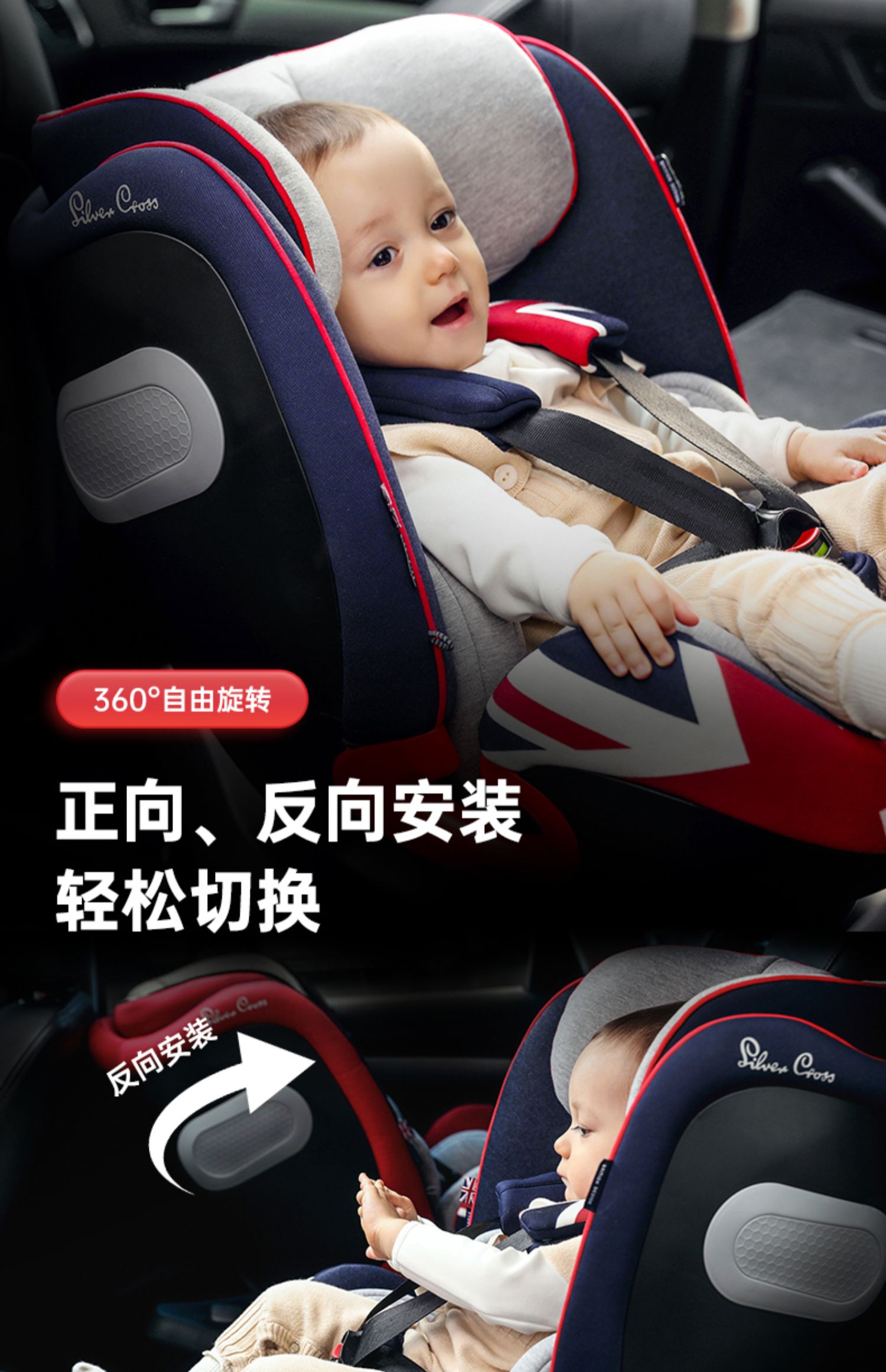 Silver Cross Severn空军一号宝宝儿童安全座椅车用360度旋转0-12岁SX442.GR21 SX442.NV
