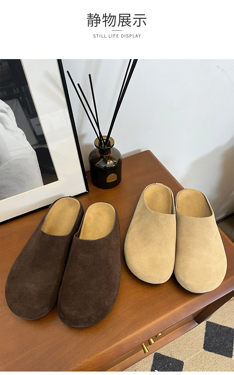 【活动商品,不退不换】可可的居家好物 老钱风来袭 平底勃肯半托 磨砂牛皮材质 舒适呵护 半托设计 简约潮流