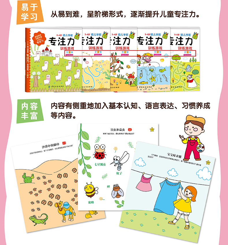 3-6岁幼儿学前专注力训练200题5册观察力训练书全脑逻辑思维培养少儿童孩子的书籍|图画捉迷藏找不同 专注力训练书 幼儿3-4-5-6岁