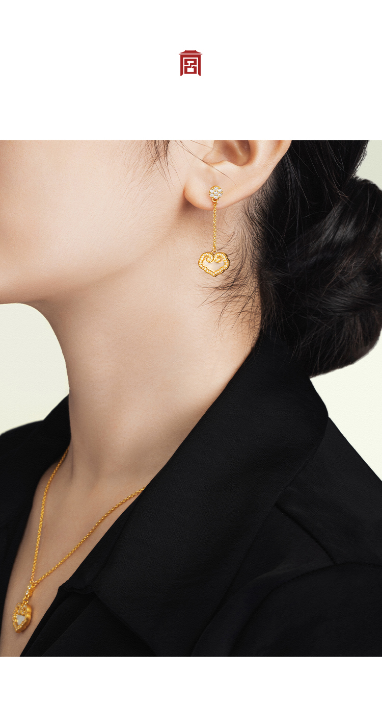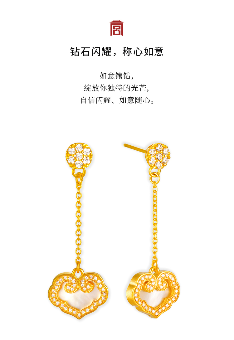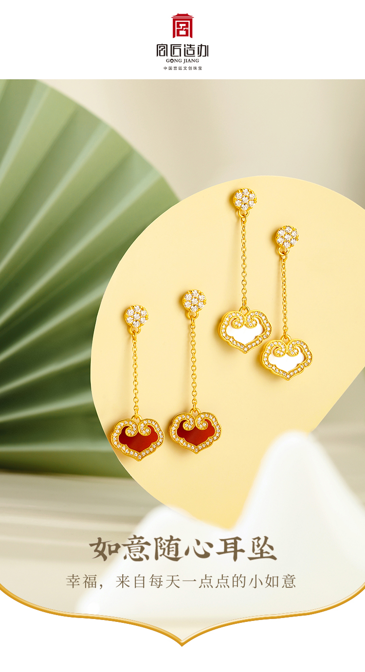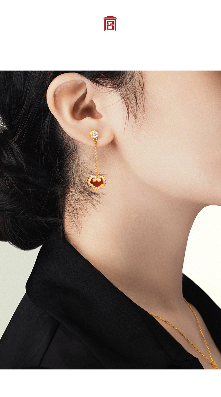 宫匠造办 如意随心耳坠 黄金镶贝母红玛瑙