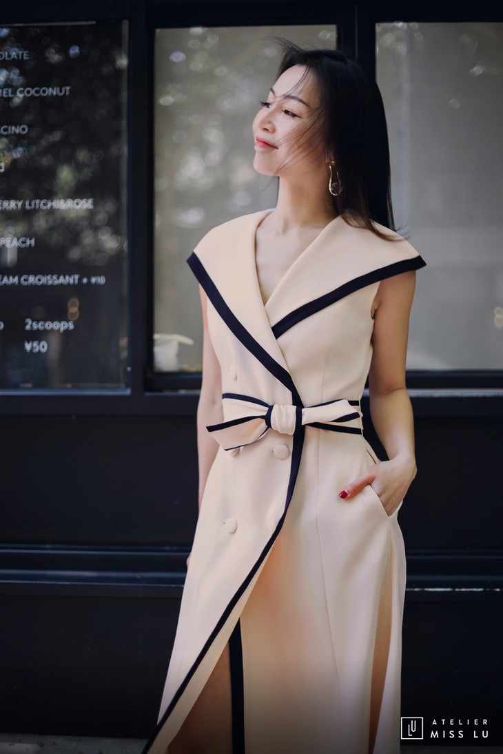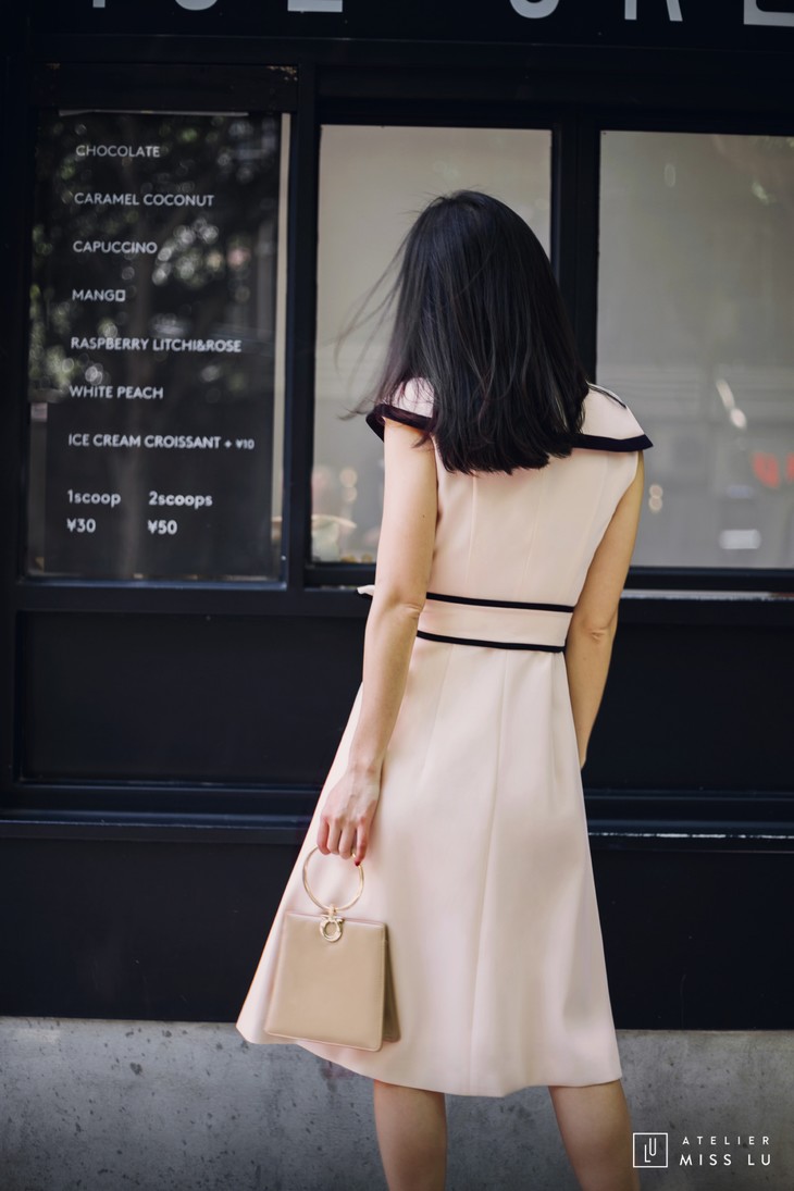 AtelierMissLu / Wallis-奶油杏撞色翻领连身裙