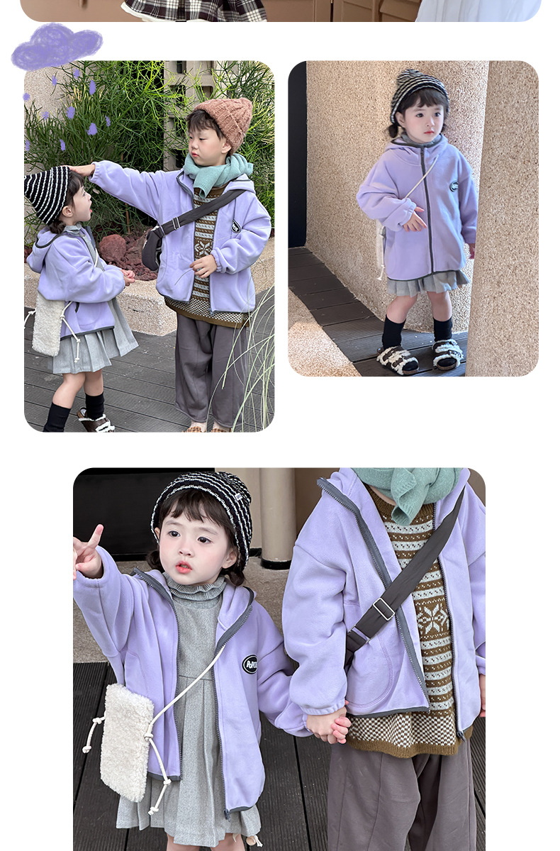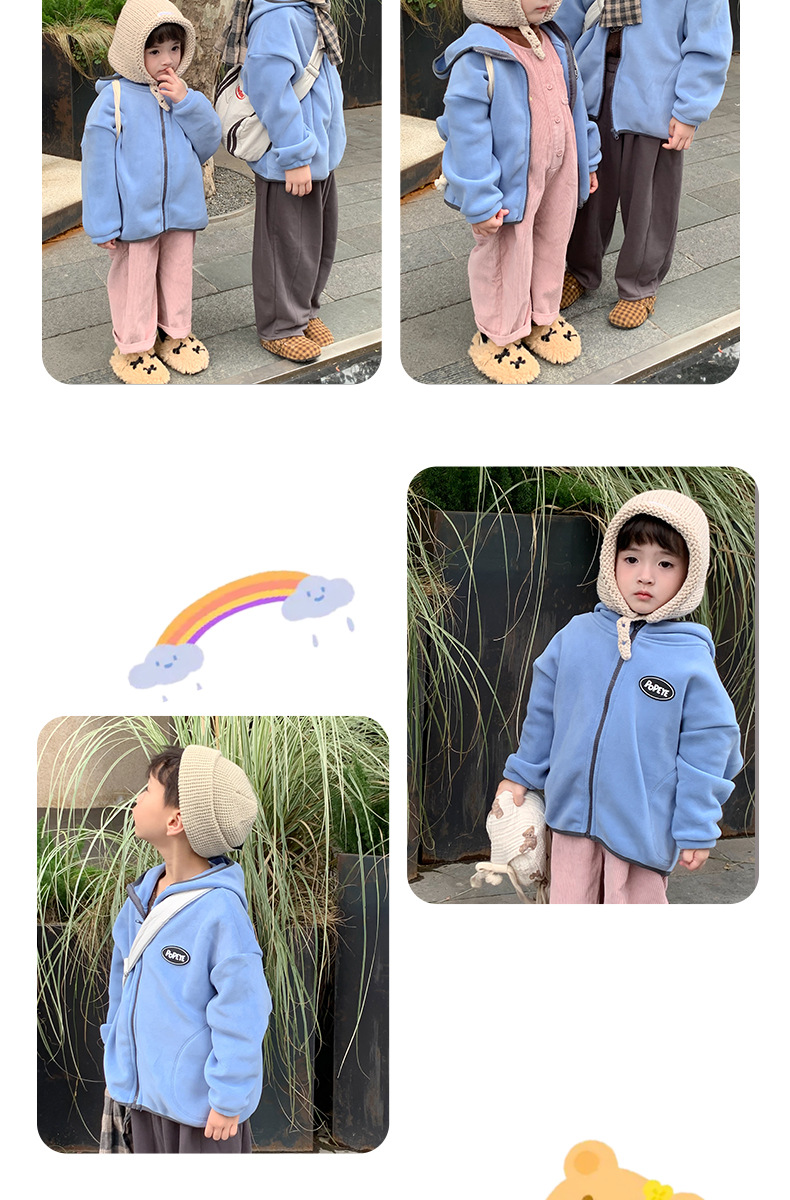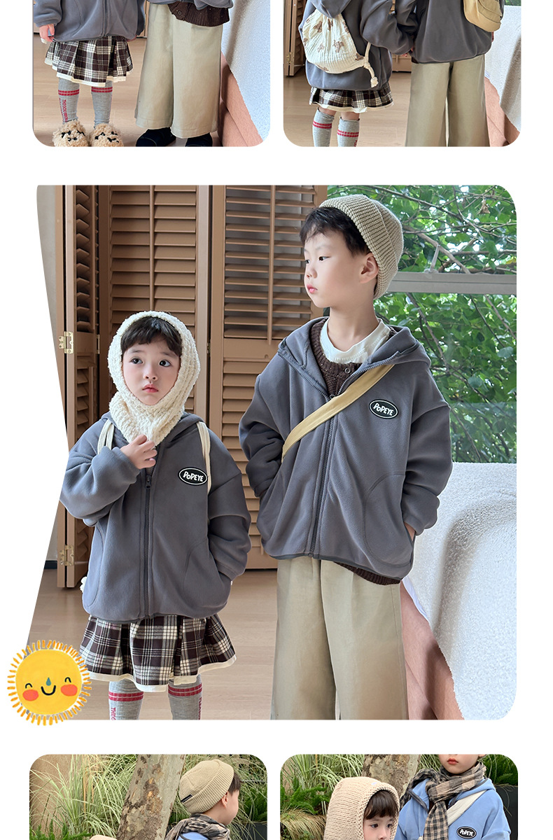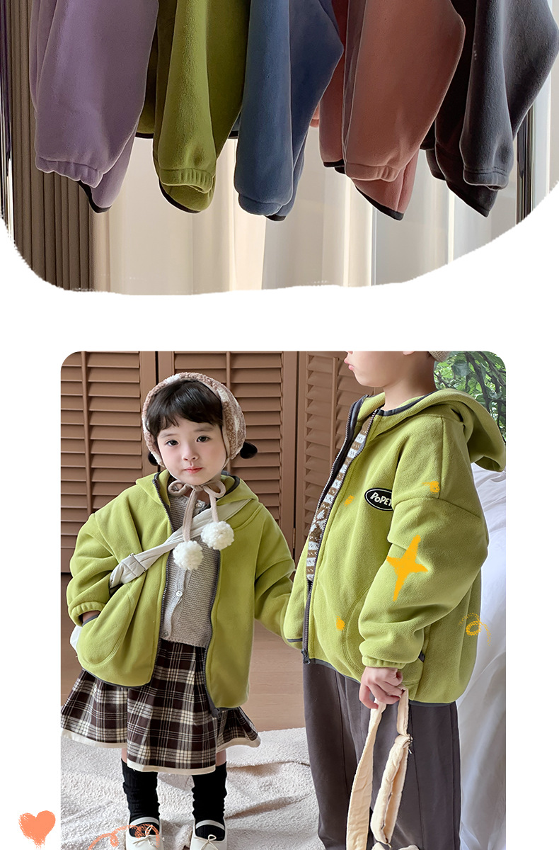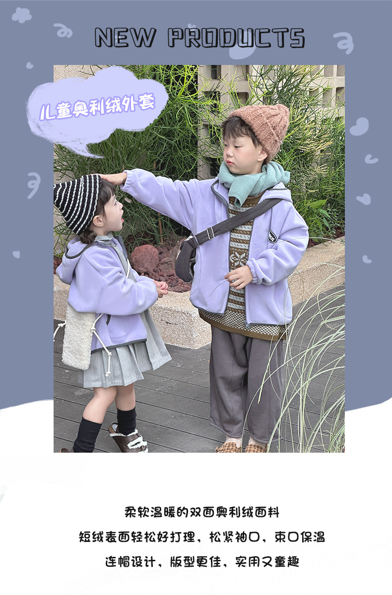 儿童秋冬外套秋冬男女童拉链上衣奥利绒连帽保暖外套100%