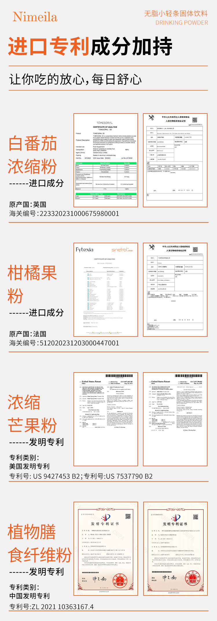 ♦中国发明专利:植物膳食纤维粉+美国发明专利:浓缩芒果粉,