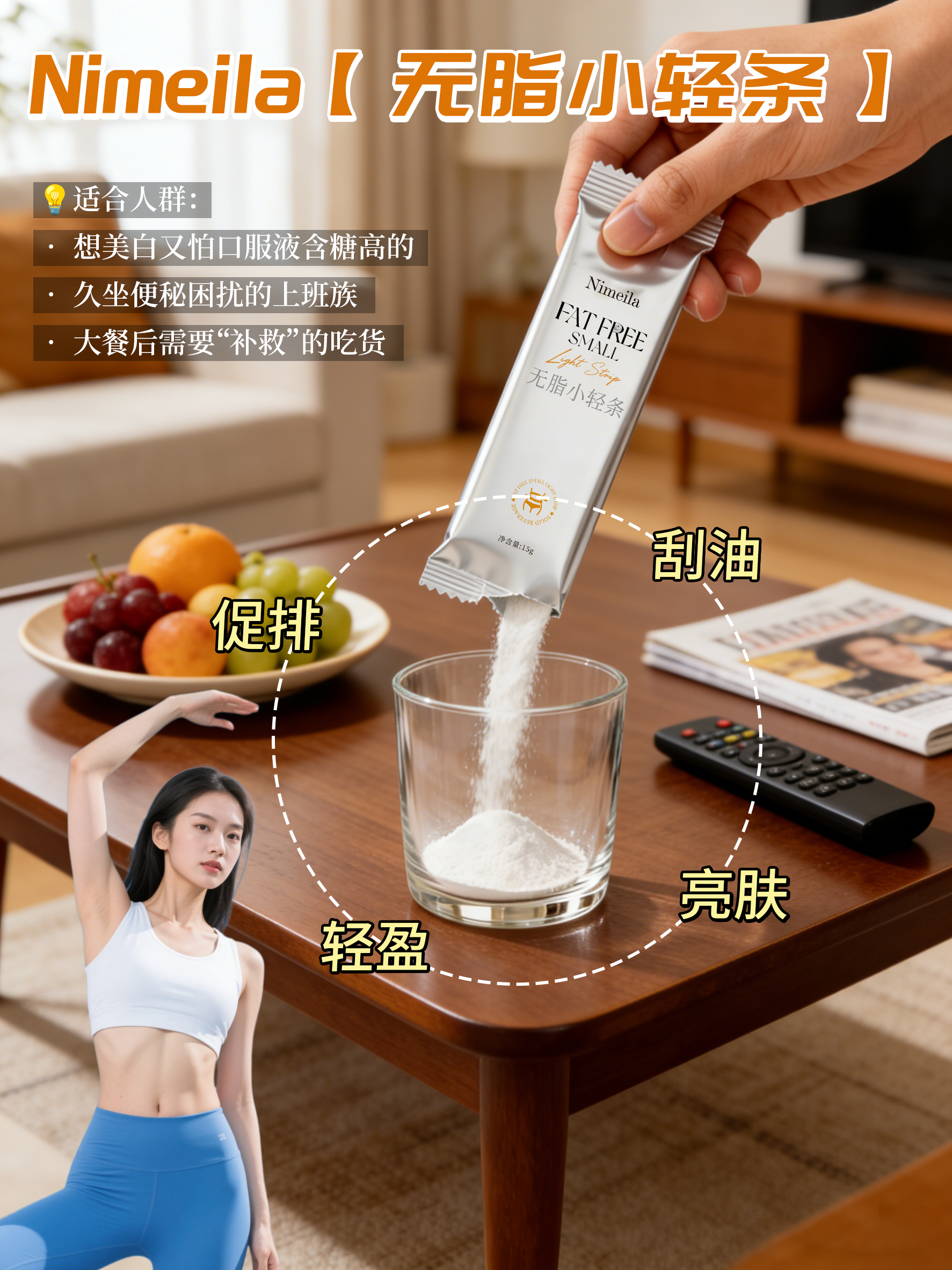 今天这款【无脂小轻条】,就是为你解决这两个终身痛点而生的!它用一个简单的逻辑击中核心:‘肠净,则身轻;肠清,则颜亮!’
