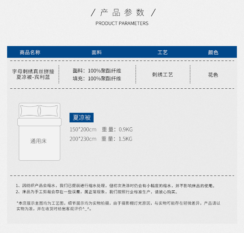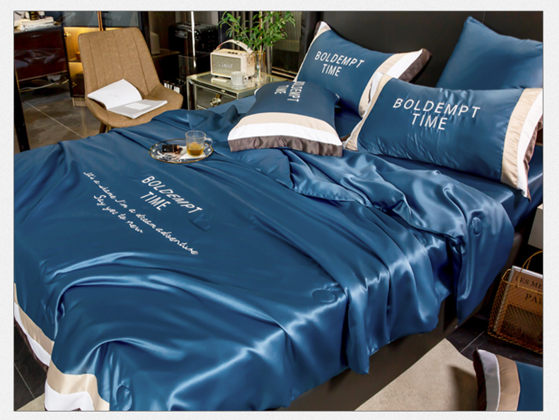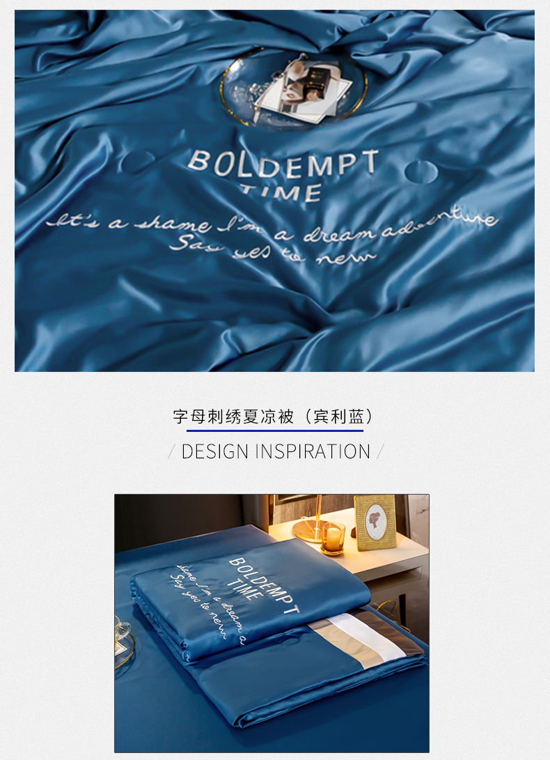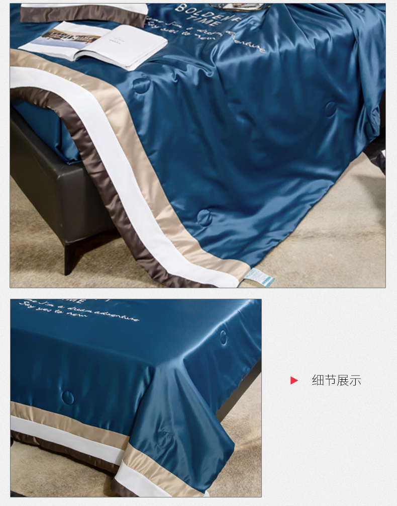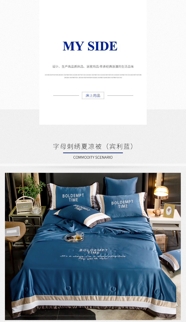 2020夏季新品 刺绣水洗真丝 拼接撞色吸湿透气夏凉被 活性印染可机洗 字母刺绣夏凉被(宾利蓝) MY SIDE