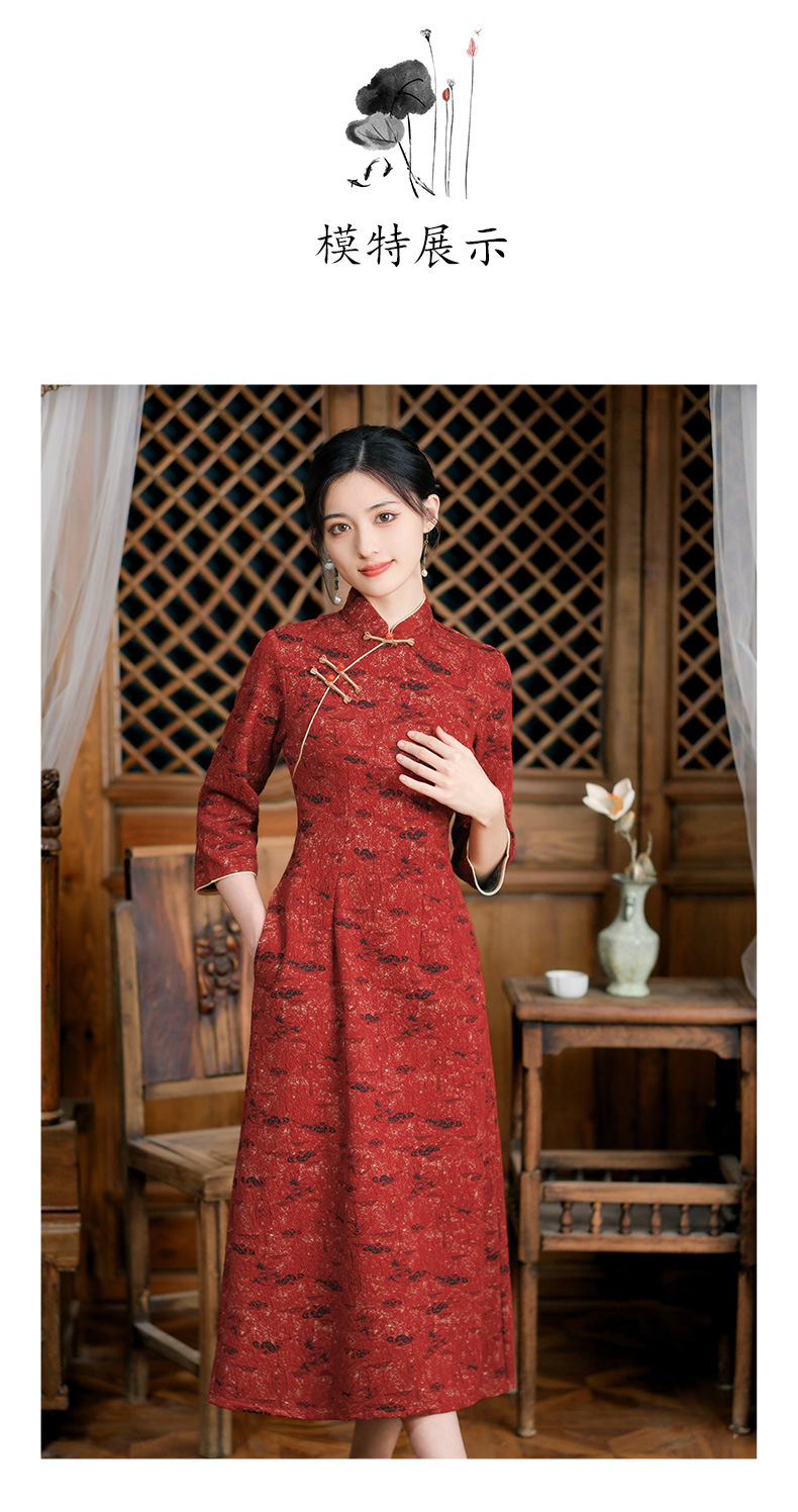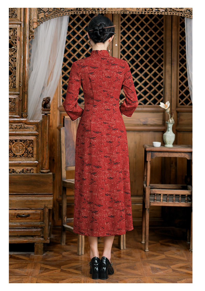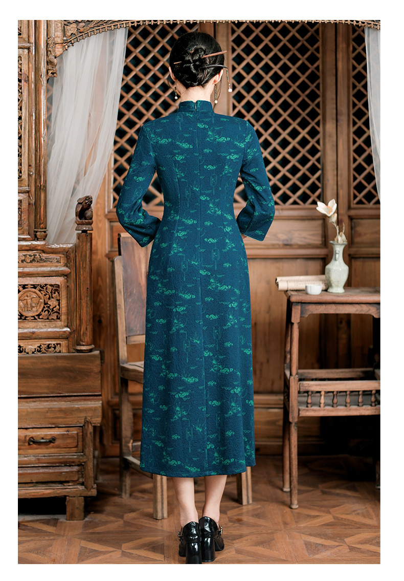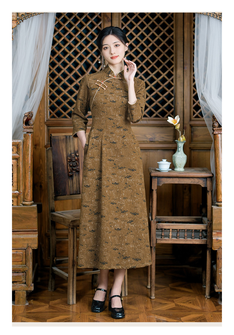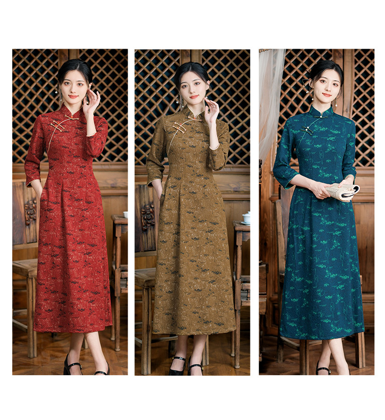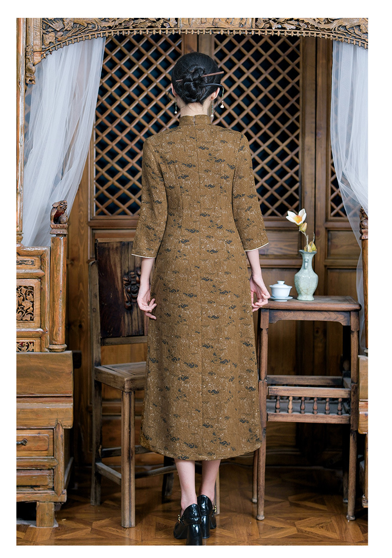 舒适简约,女长款妈妈装洋气大减龄摆裙遮肚改良秋冬装新款裙旗袍连衣裙GSJ-3507