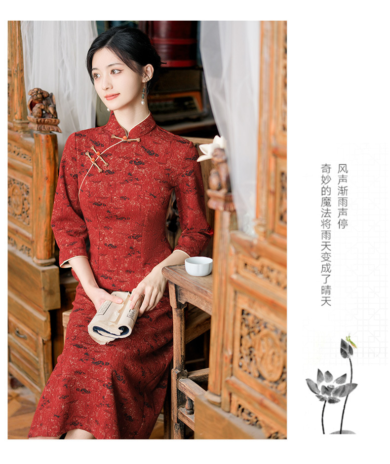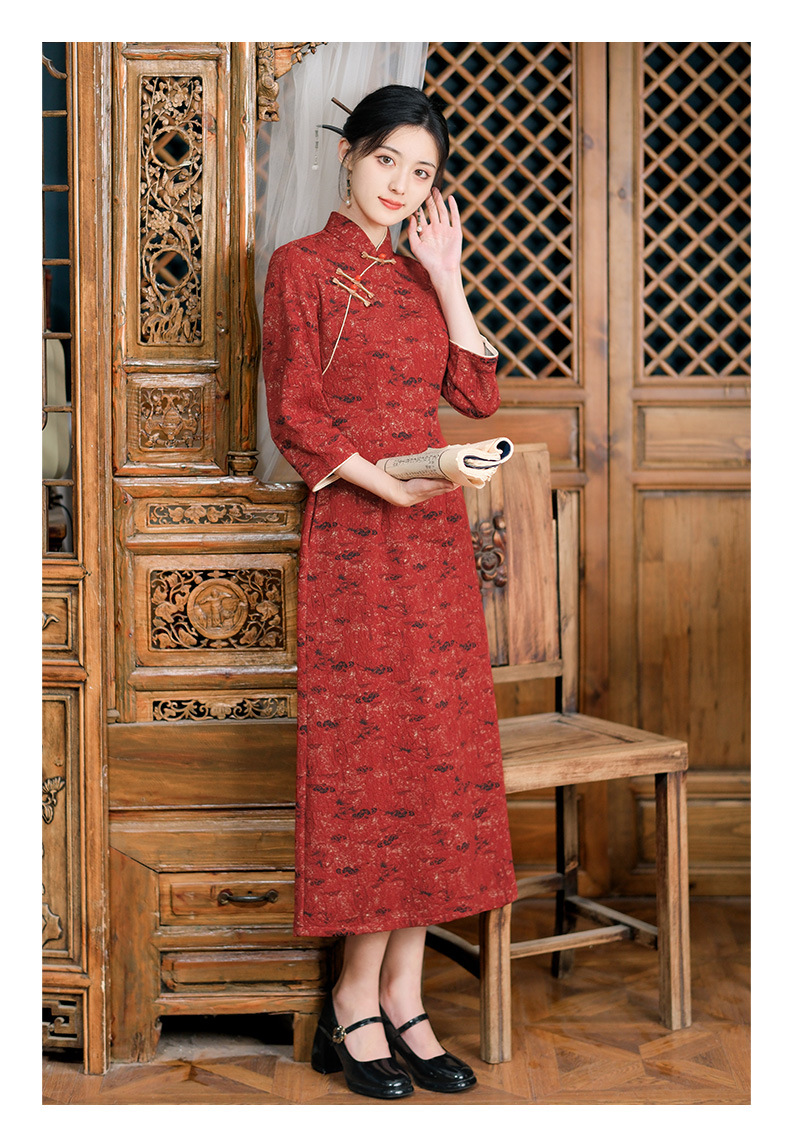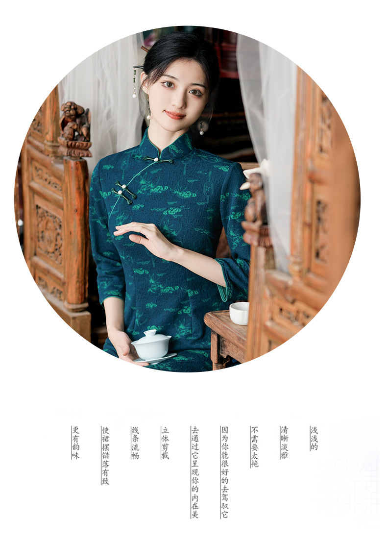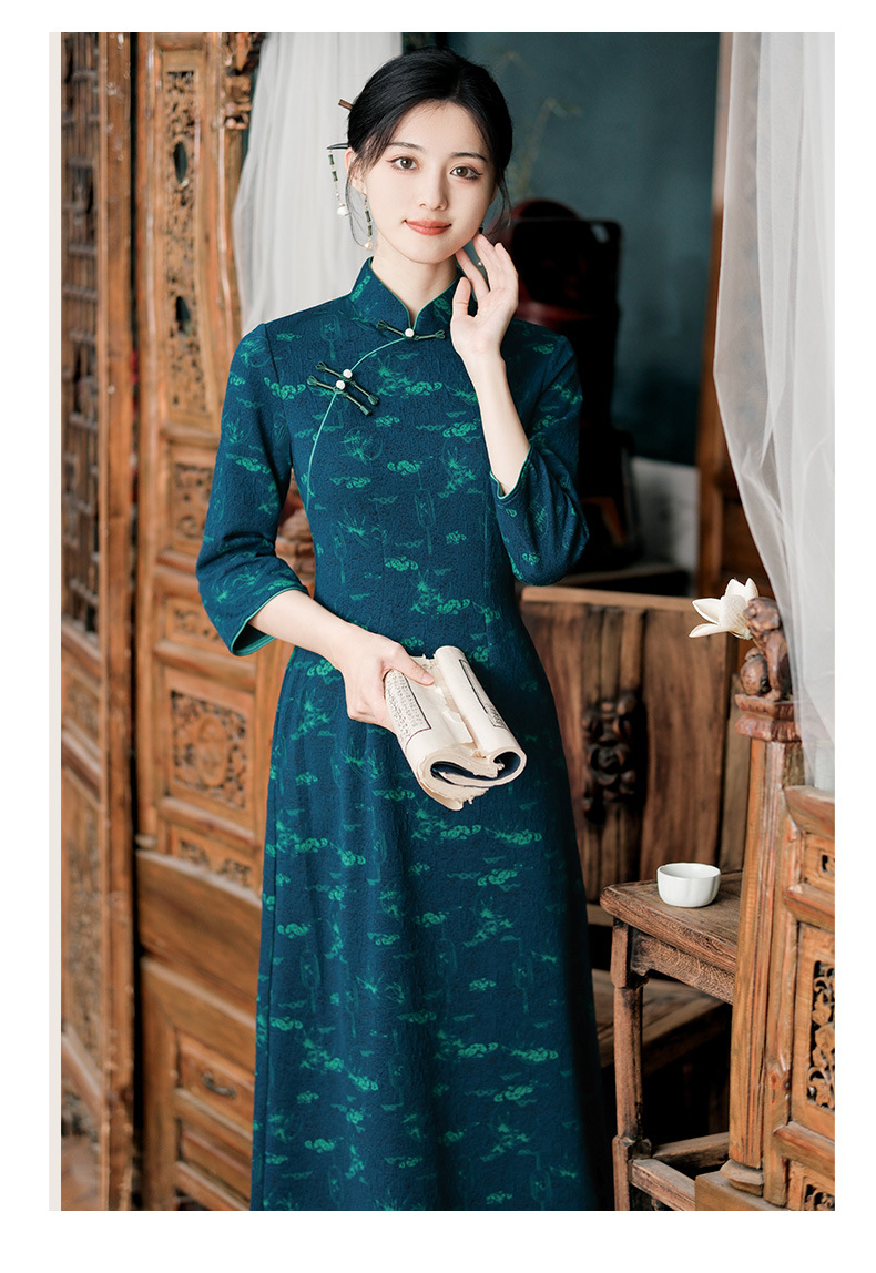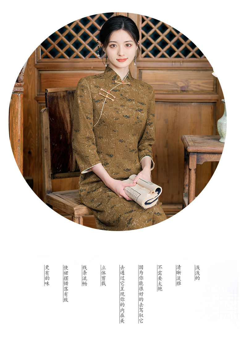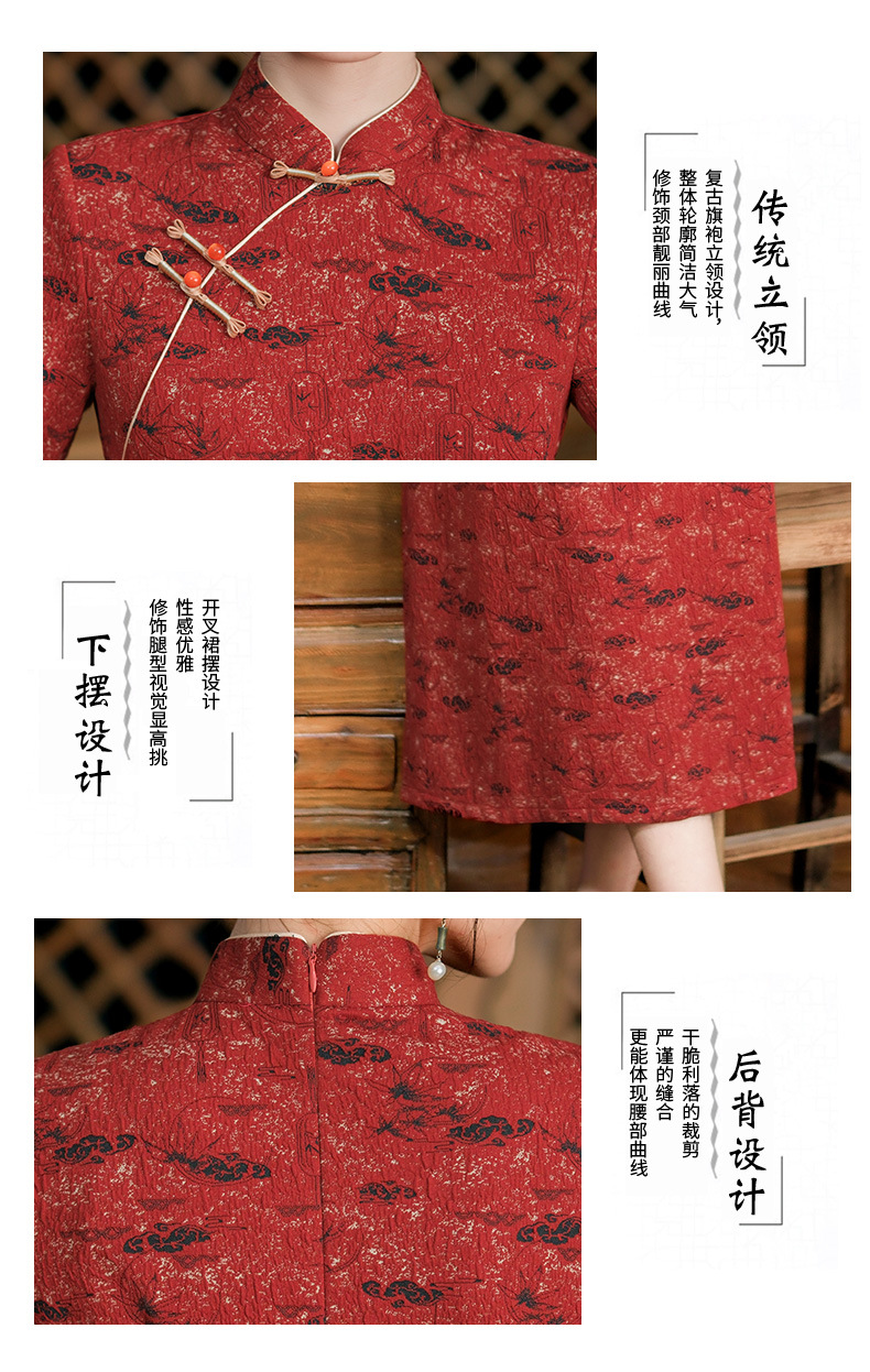 舒适简约,女长款妈妈装洋气大减龄摆裙遮肚改良秋冬装新款裙旗袍连衣裙GSJ-3507