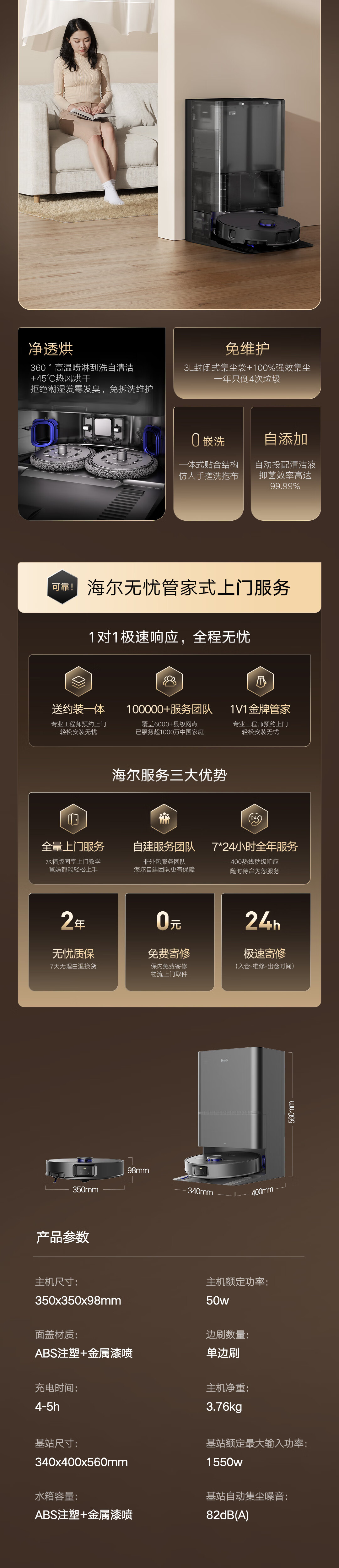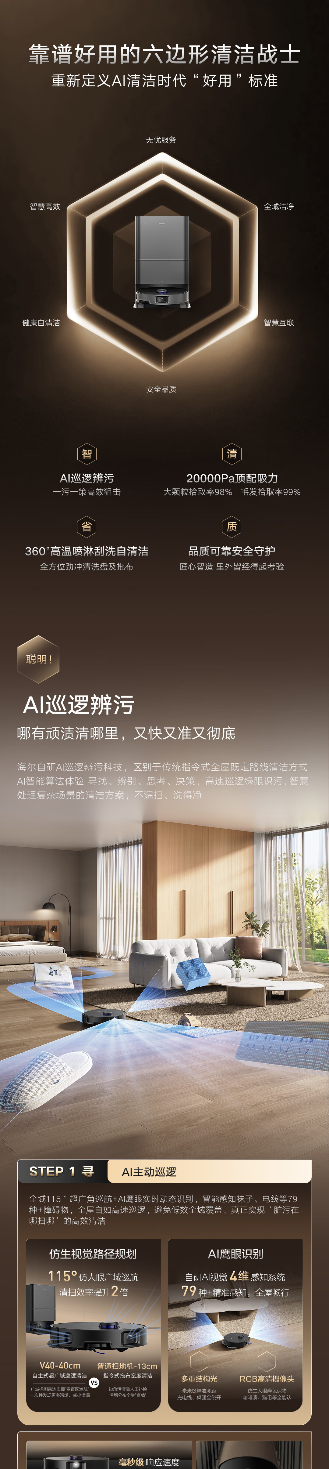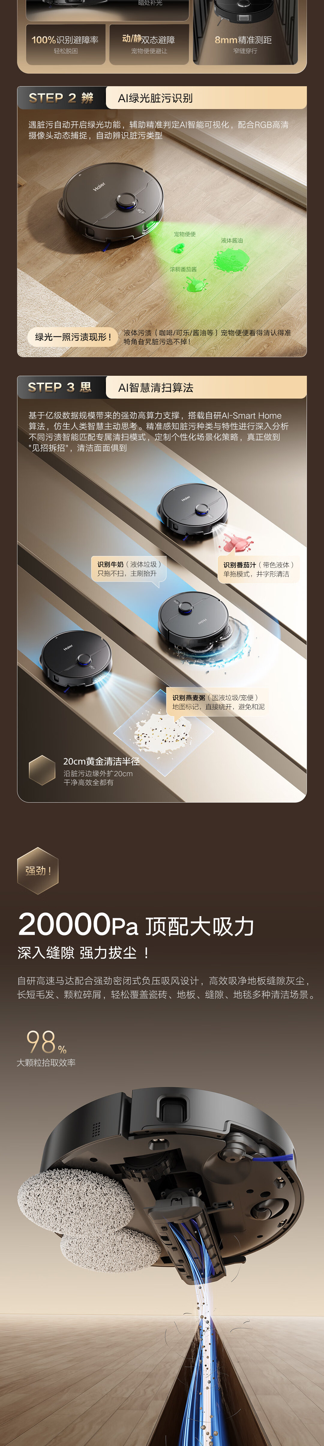 海尔V系列顶配版扫地机器人 LDS激光导航0缠毛滚刷 热风烘干加压搓洗 除菌智能家用全自动扫吸拖一体机 【重磅新款20000Pa大吸力】V5S
