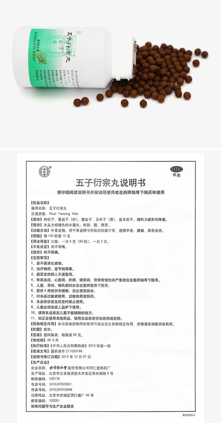 | 产品品名 | 同仁堂 五子衍宗丸(水蜜丸) 60g |