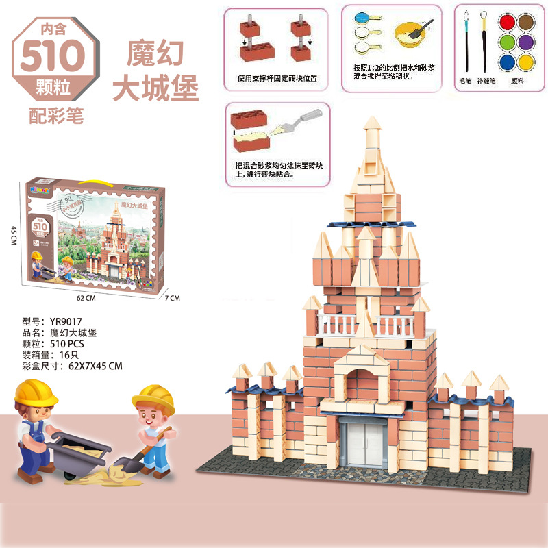 【儿童砌砖建筑模型】盖别墅房子 小小泥瓦匠手工DIY 砌墙益智早教玩具