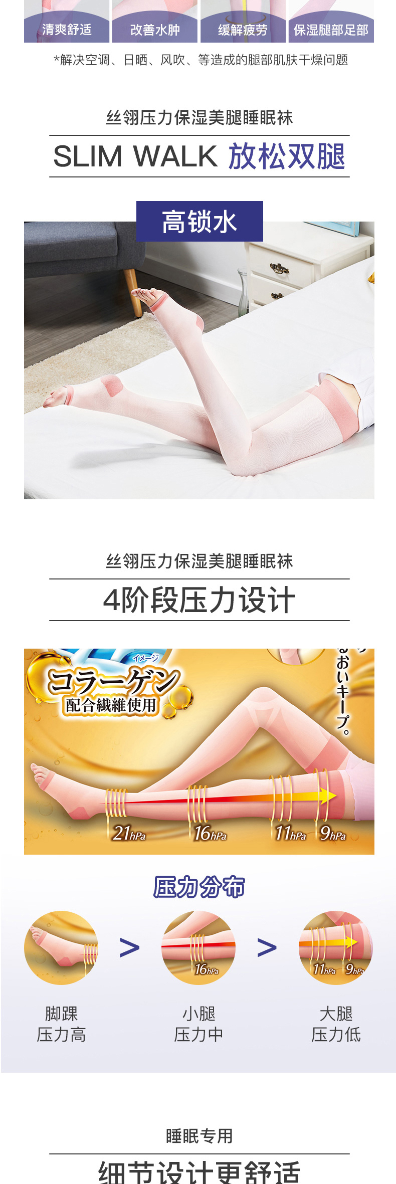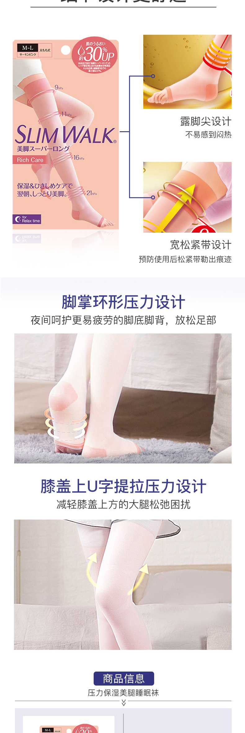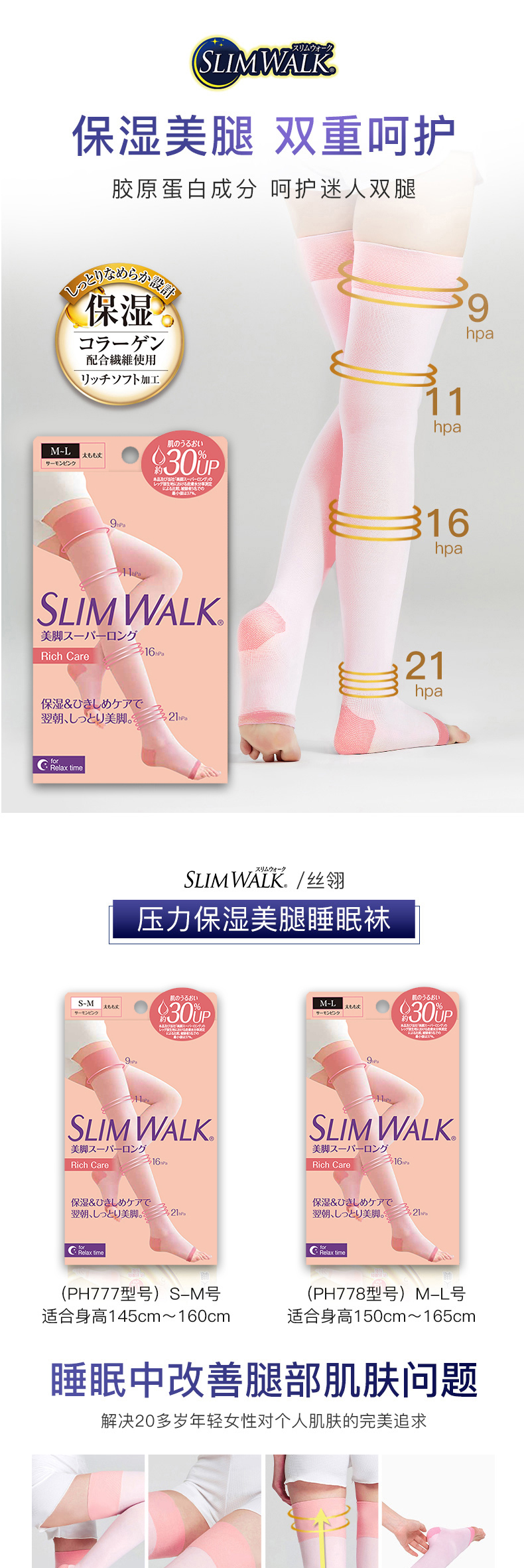 日本制造 SLIMWALK/丝翎 保湿美腿袜超长款4段压力