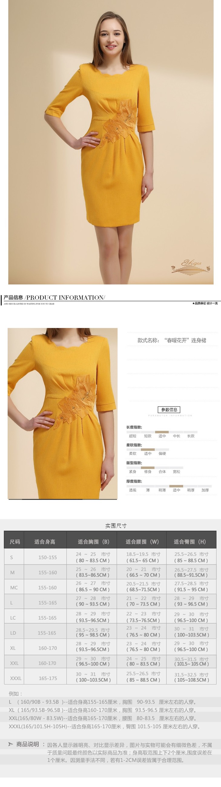 【特惠】YIQU |“春暖花开”连身裙(姜黄)PT