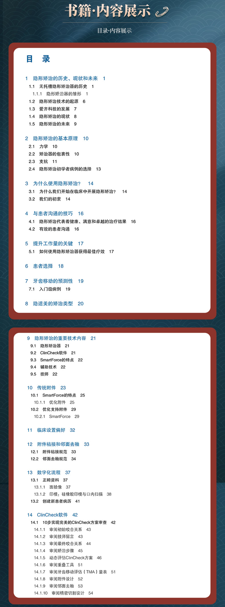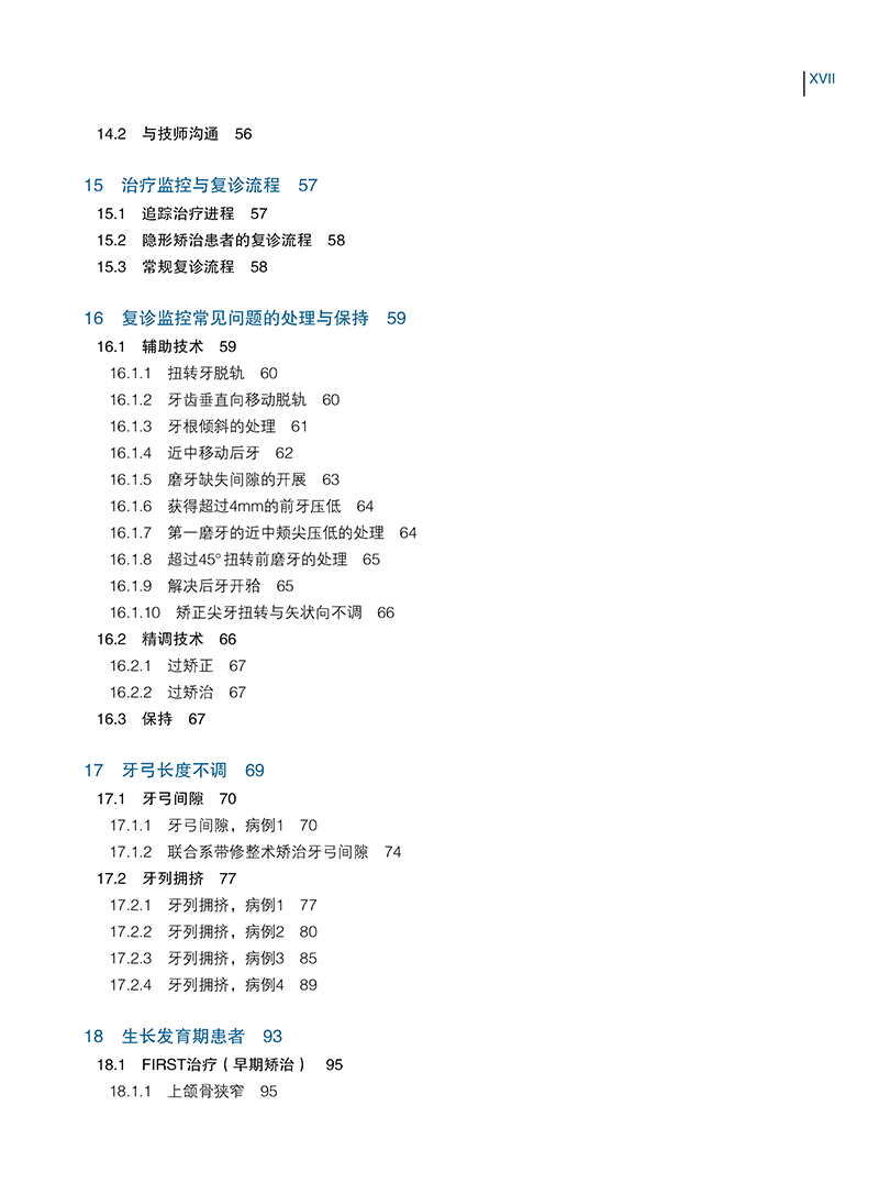 该书全面介绍了隐形矫治的原则、患者的选择与沟通技巧、不同错牙合畸形的方案设计要点以及与技师的沟通要点等内容,无论从专业性、全面性和准确性来说,无疑都是正畸医生以及从事正畸工作的口腔医生学习隐形矫治技术的重要参考用书。