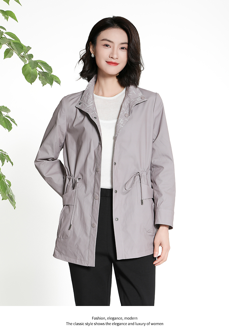 佐尔美新品春秋季女装纯色百搭休闲中长外套风衣上衣E73FC44