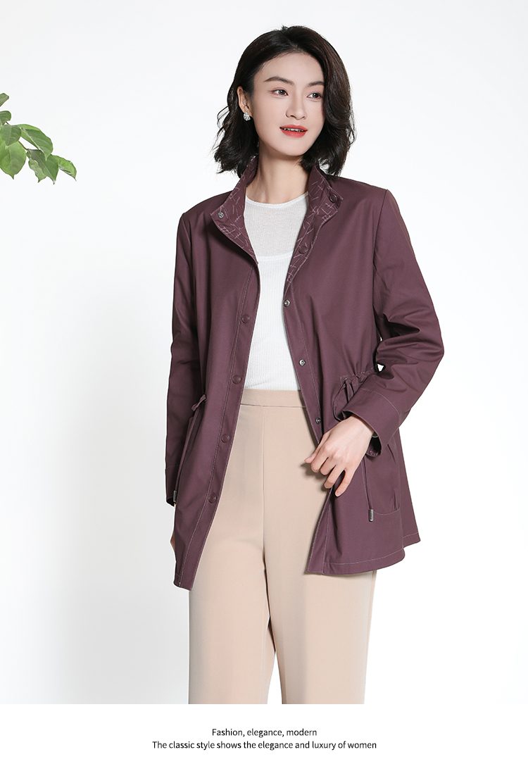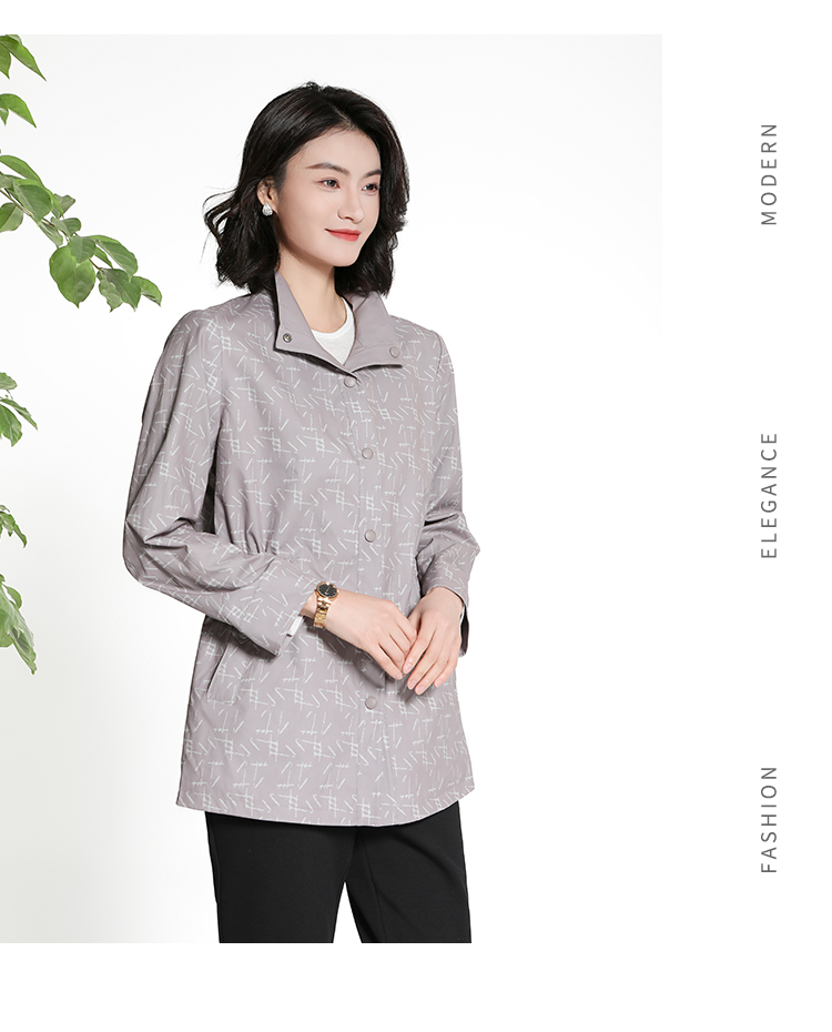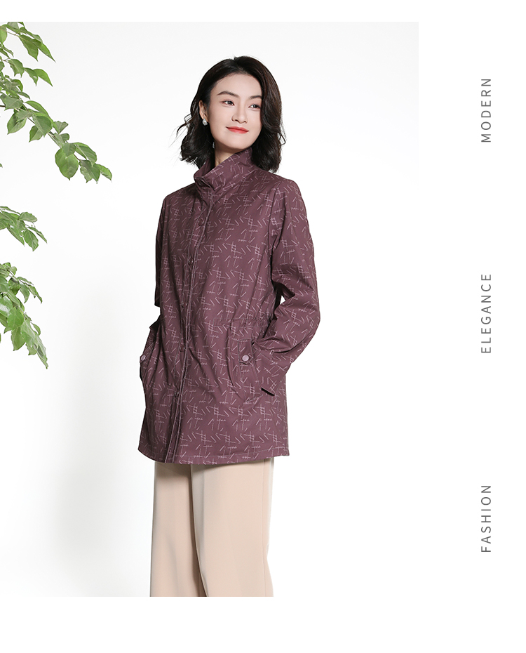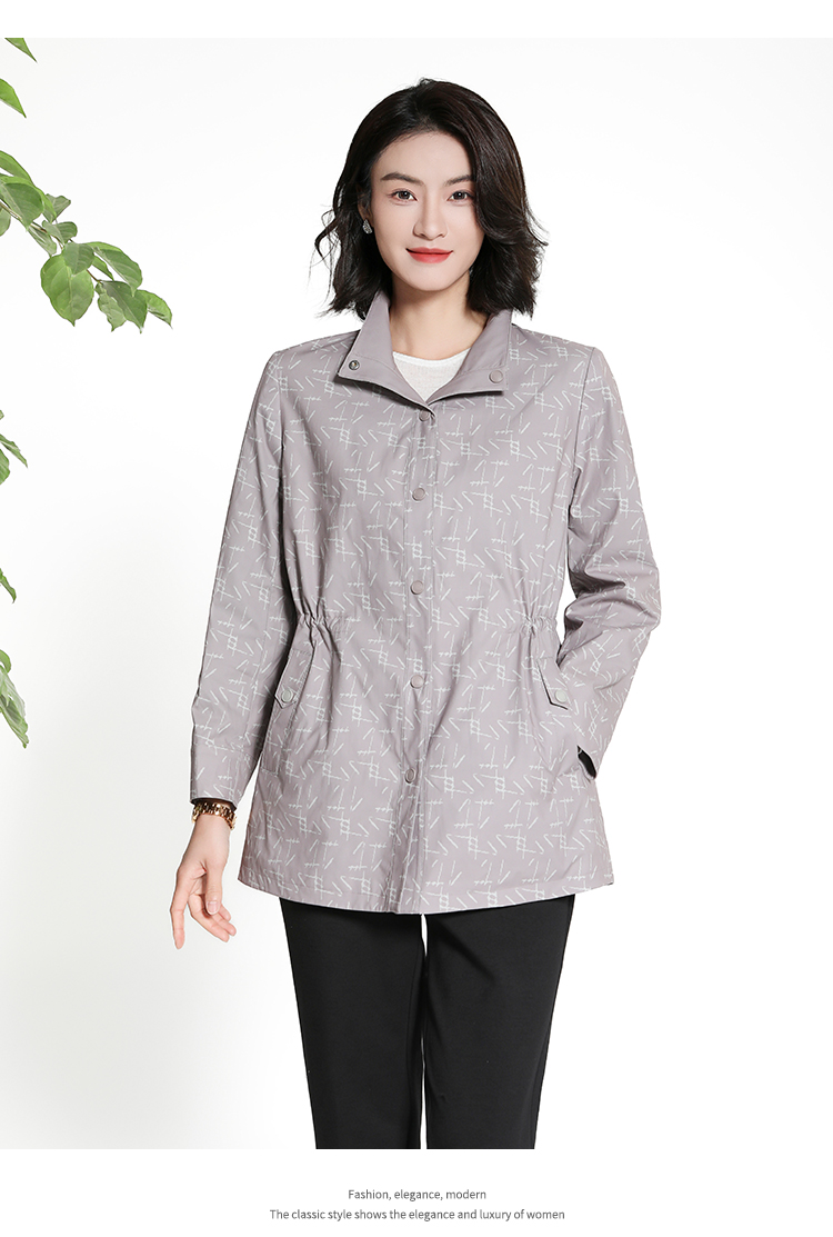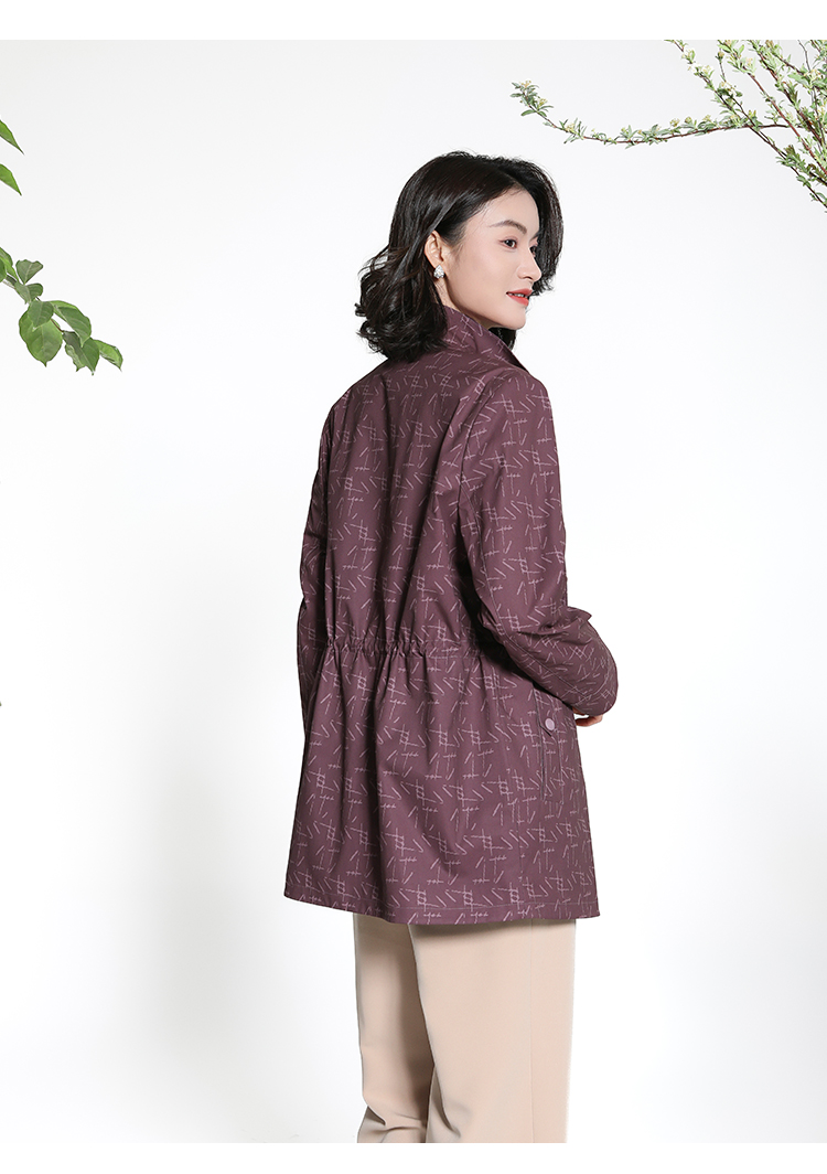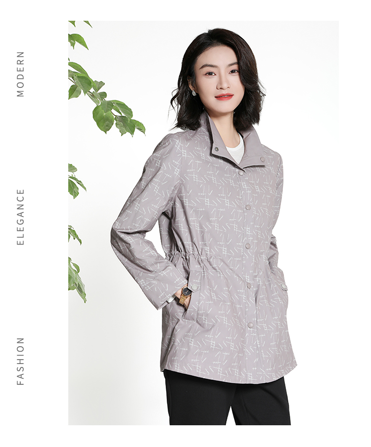 佐尔美经典老钱几何图案松紧腰风衣外套女M43FZ18