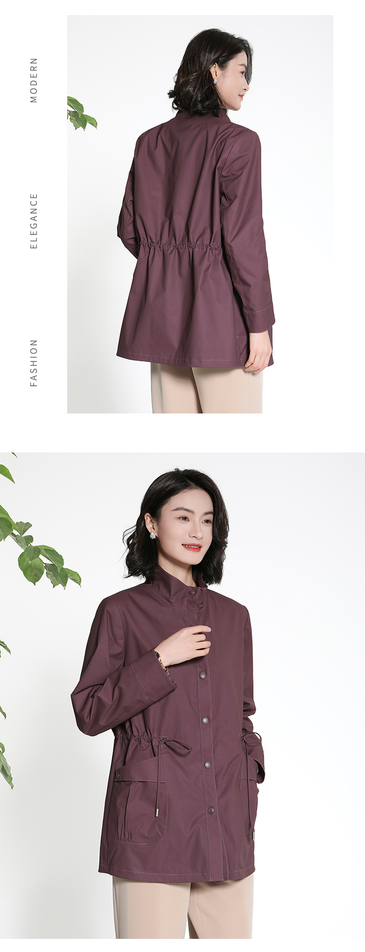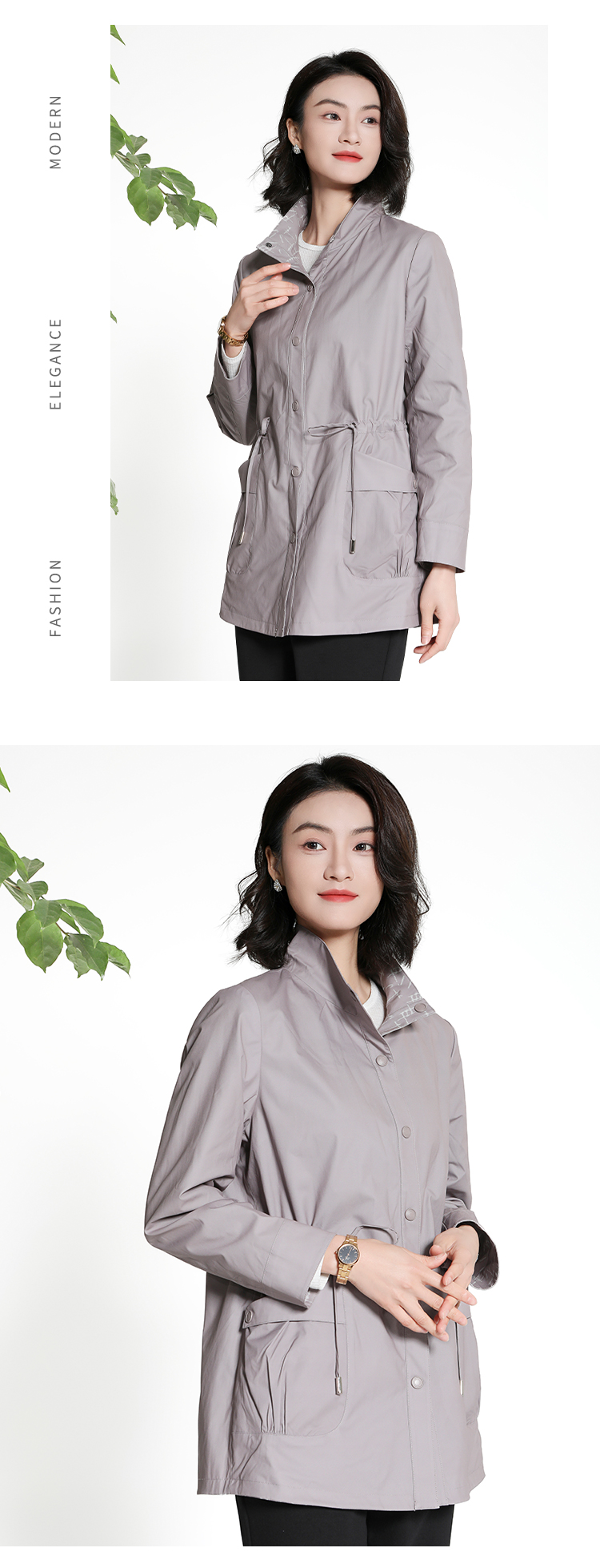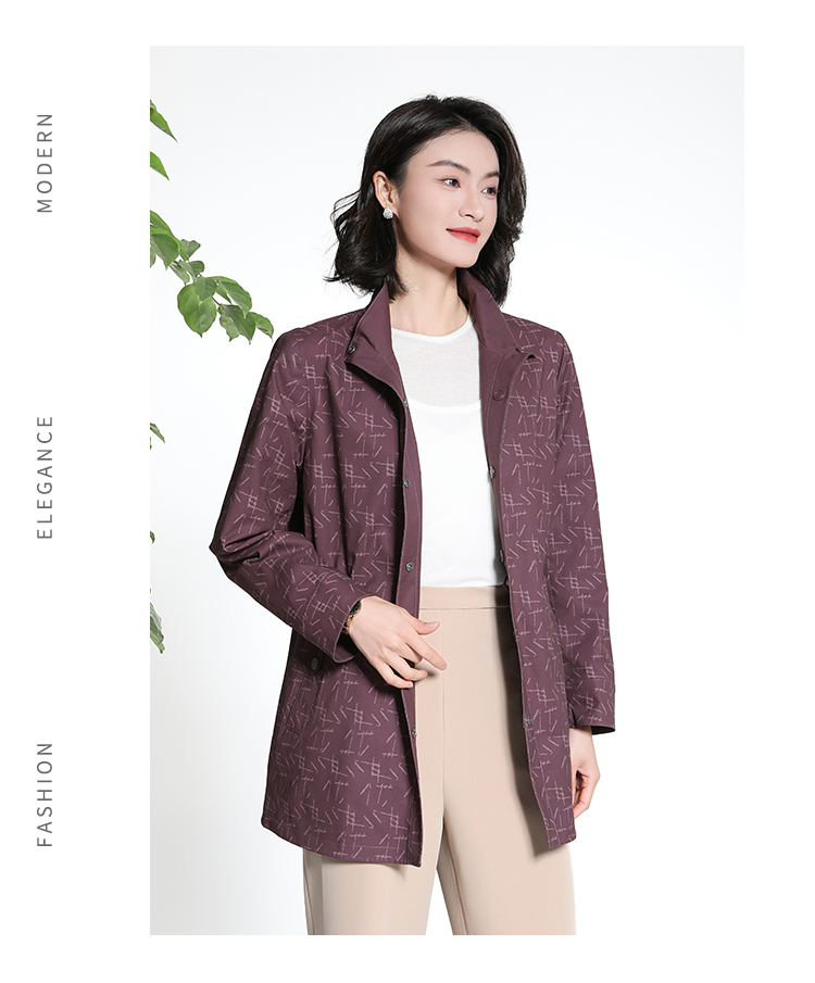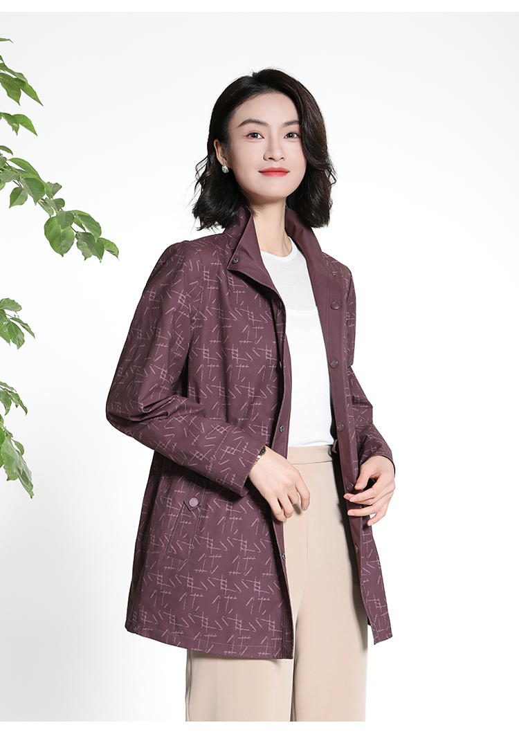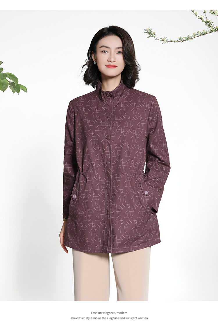 佐尔美经典老钱几何图案松紧腰风衣外套女M43FZ18