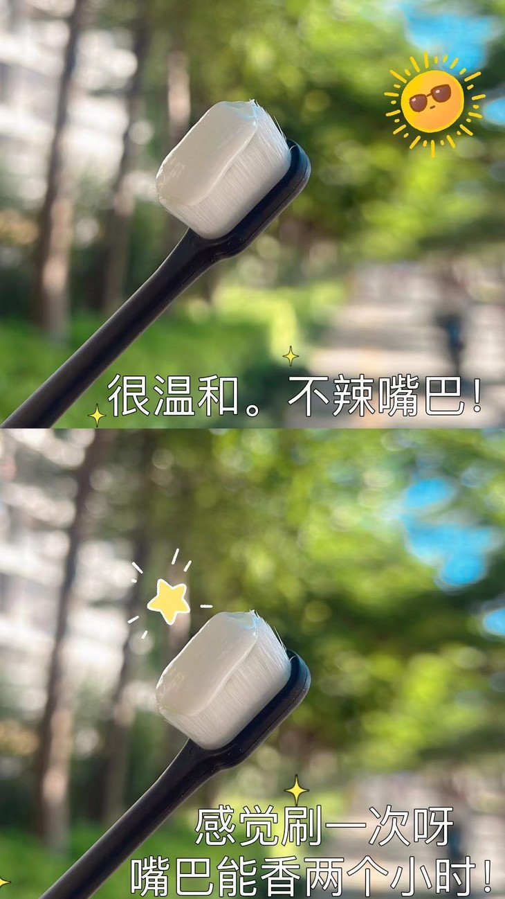 使用感:温和不辣口不刺激,泡沫丰富绵密,连刷牙都是一种享受~~ 刷完牙一定记得不要着急吐掉哦,多含在口里1-2分钟,让里面的有效成分更好的发挥出来❗ 身边的小伙伴使用后反都非常不错哦,对口腔溃疡炎症出血的效果杠杠的!