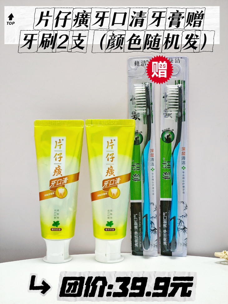 片仔癀牙口清牙膏双十二大促活动‼️👇🏽👇🏽 线下商超95g‼️ 💰23.9元/只,我们开团2只39.9元,直接省下8块钱! 另外,我们在自掏腰包给大家赠送超市卖几块钱一支的软毛牙刷2支(牙刷颜色随机哦) 牙膏是生活必需品,大家都直接去囤,省几块钱也是省呀!