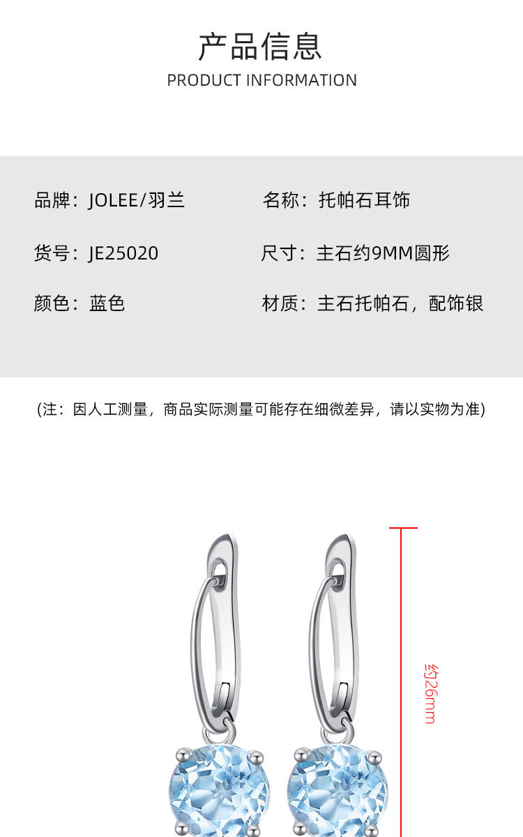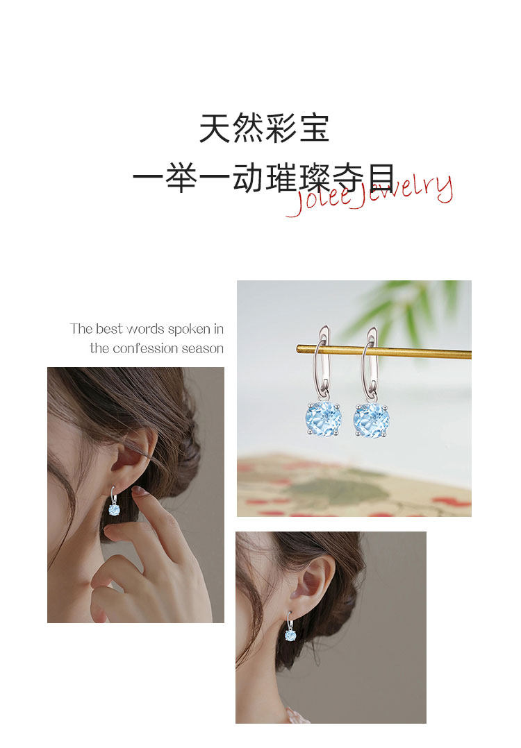 【托帕石耳钉】S925银轻奢时尚耳坠饰品送女生节日礼物一物一证JE25020-水晶CC