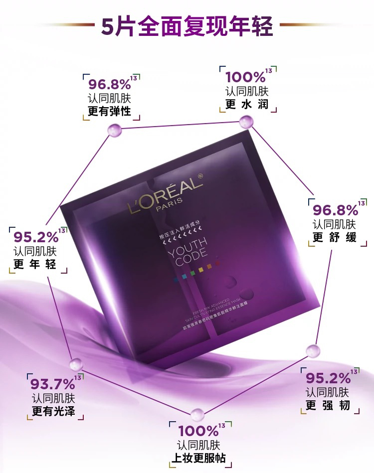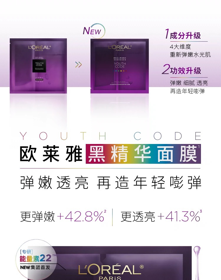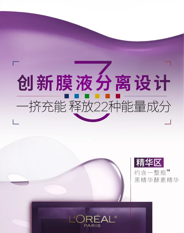 法国 L'OREAL欧莱雅 黑酵素抗初老紧致保湿精华面膜 5片