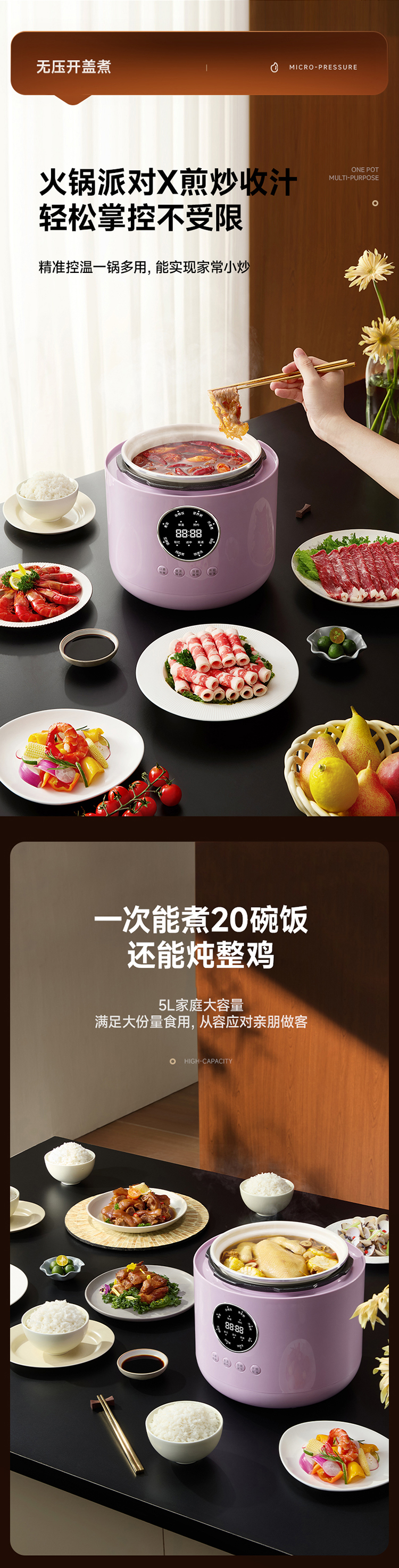 【压力煮饭更Q弹更香甜】大宇变压瞬沸电压力锅DY-YLG07 煮饭焖炖二合一 10min保压速煮饭 双向翻滚加热 6大菜单 珐琅油内胆 5L大容量能煮20碗饭