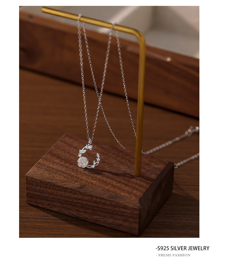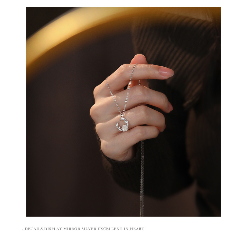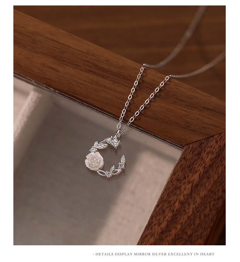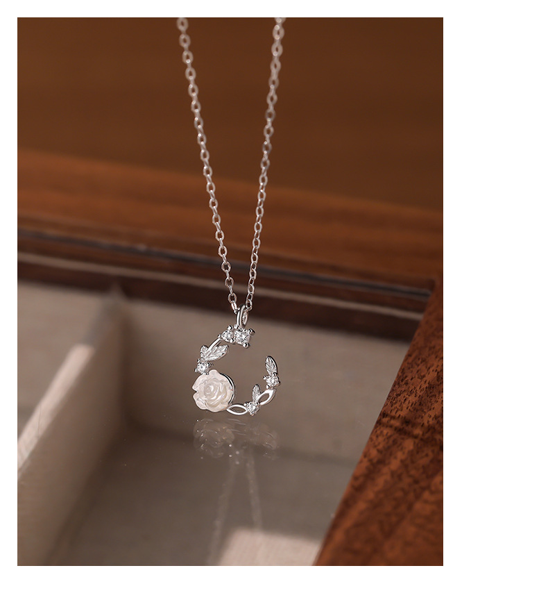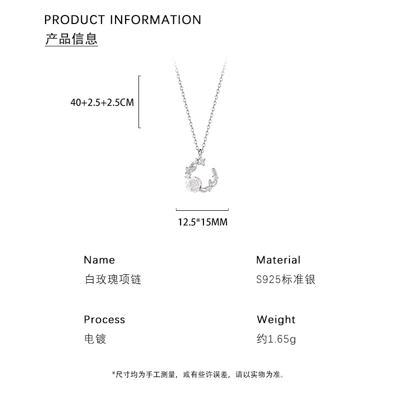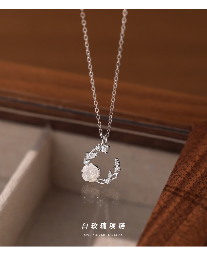 卡蒂罗/KADER 纯白玫瑰项链 925银月夜玫瑰花浪漫清冷感轻奢时尚拼接链 梦幻小众约会穿搭出游镶钻锁骨链