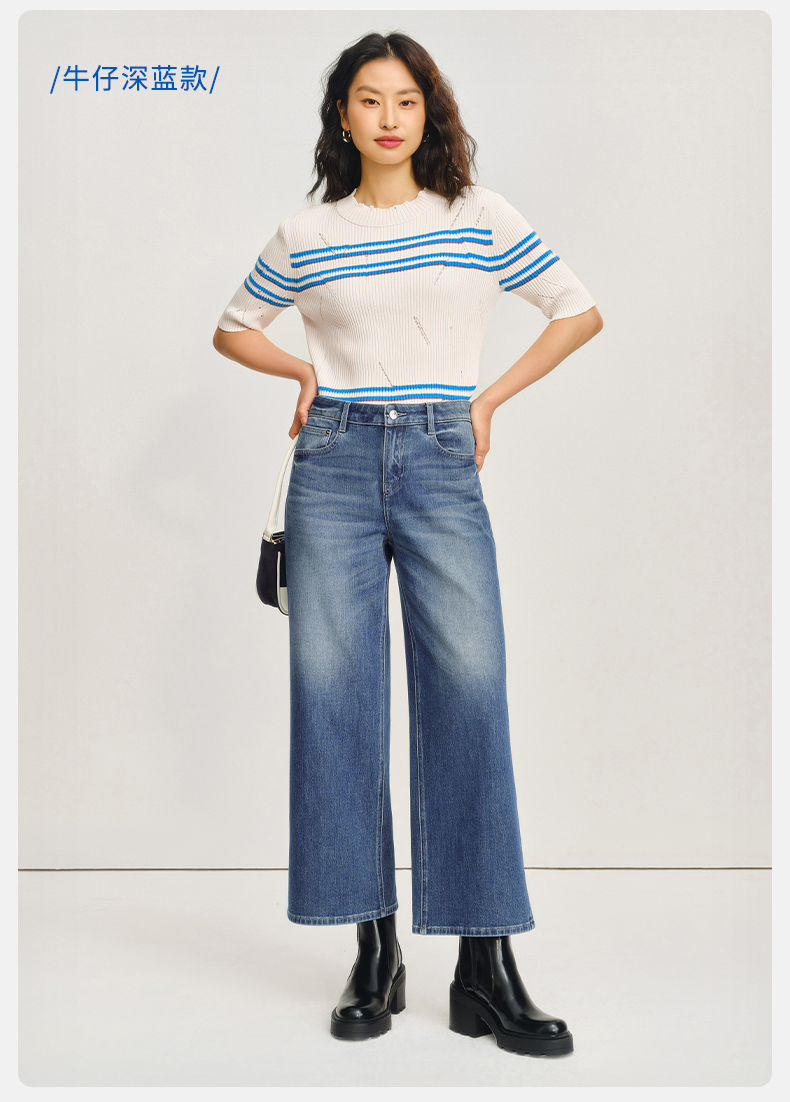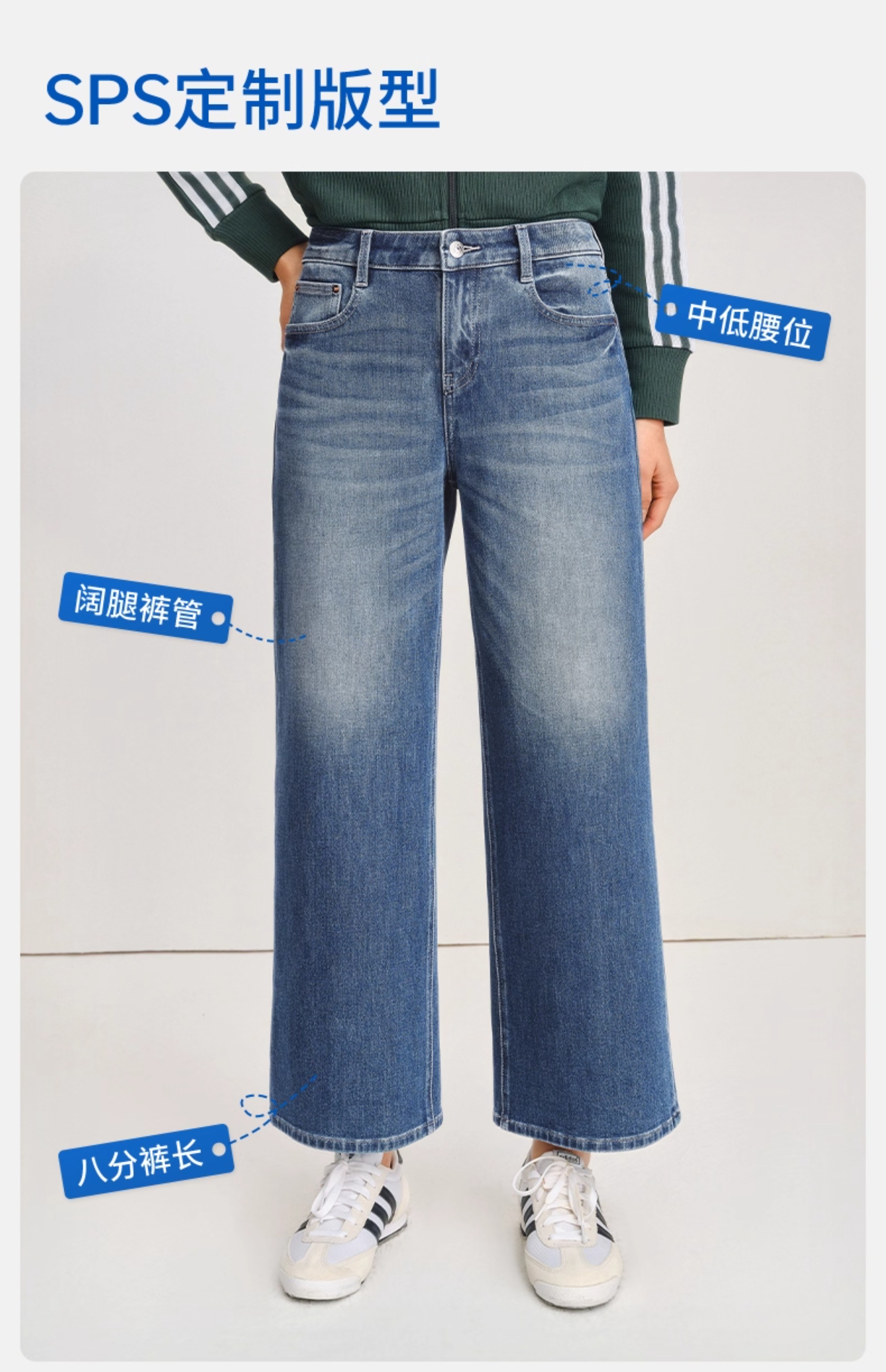 【八分威化裤】simplepieces夏秋新款SPS牛仔女四面弹宽松阔腿裤