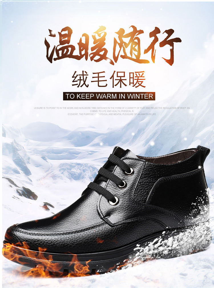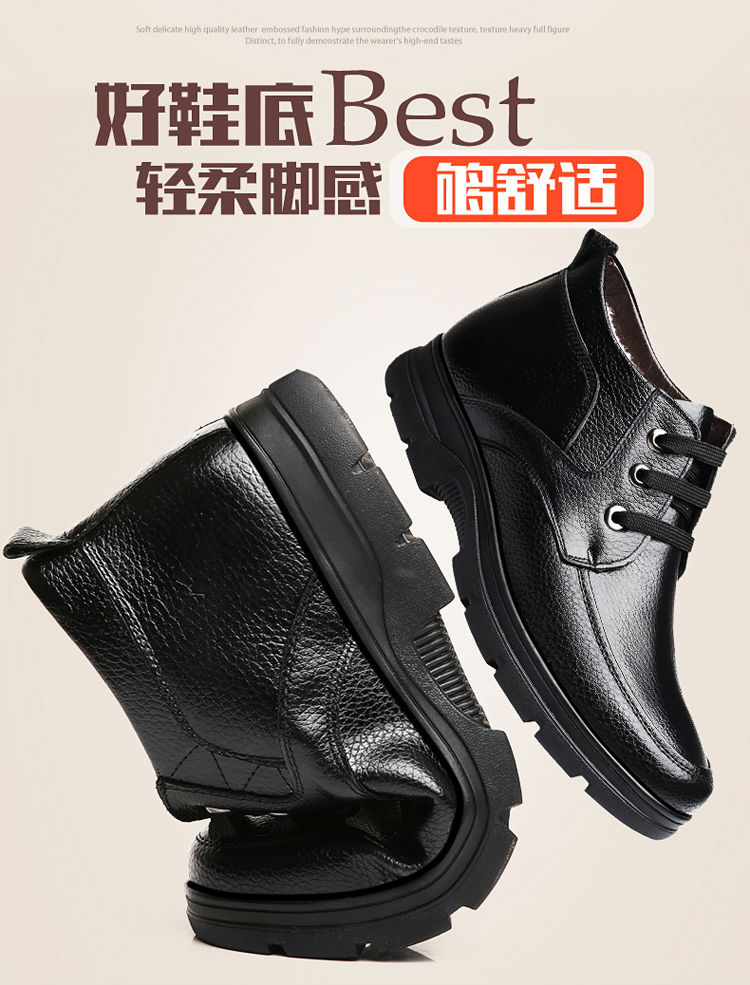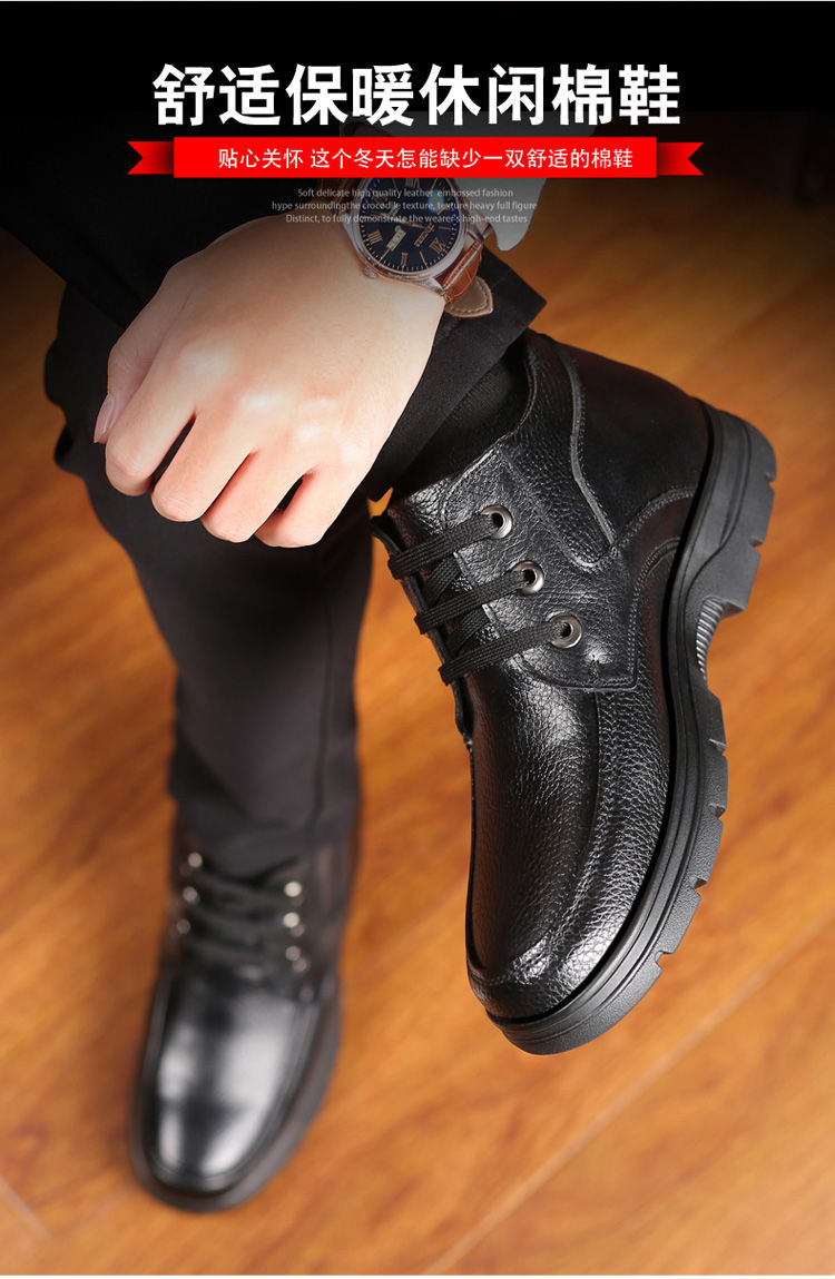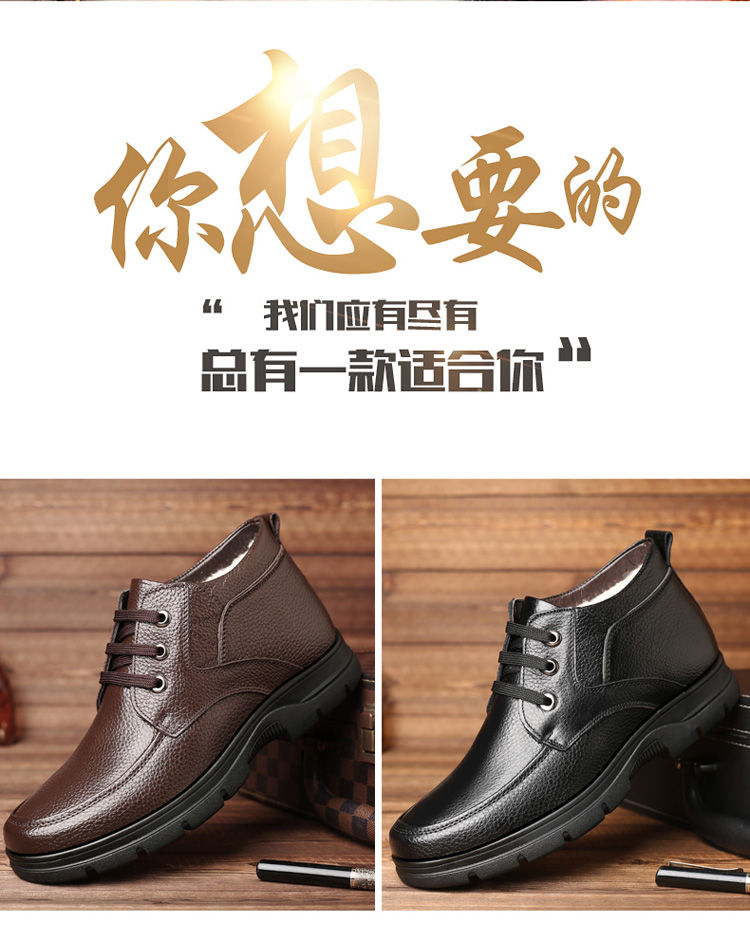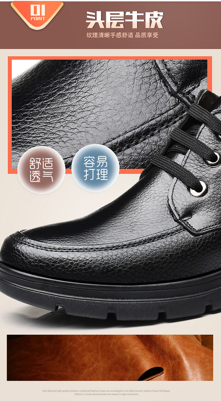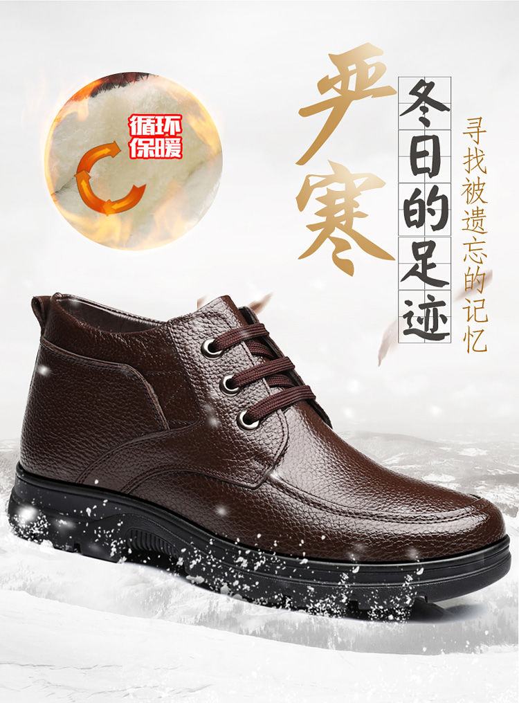 男冬季中年高帮棉鞋 休闲皮鞋 加绒保暖爸爸鞋中老年皮鞋