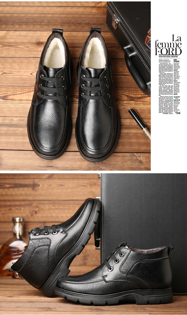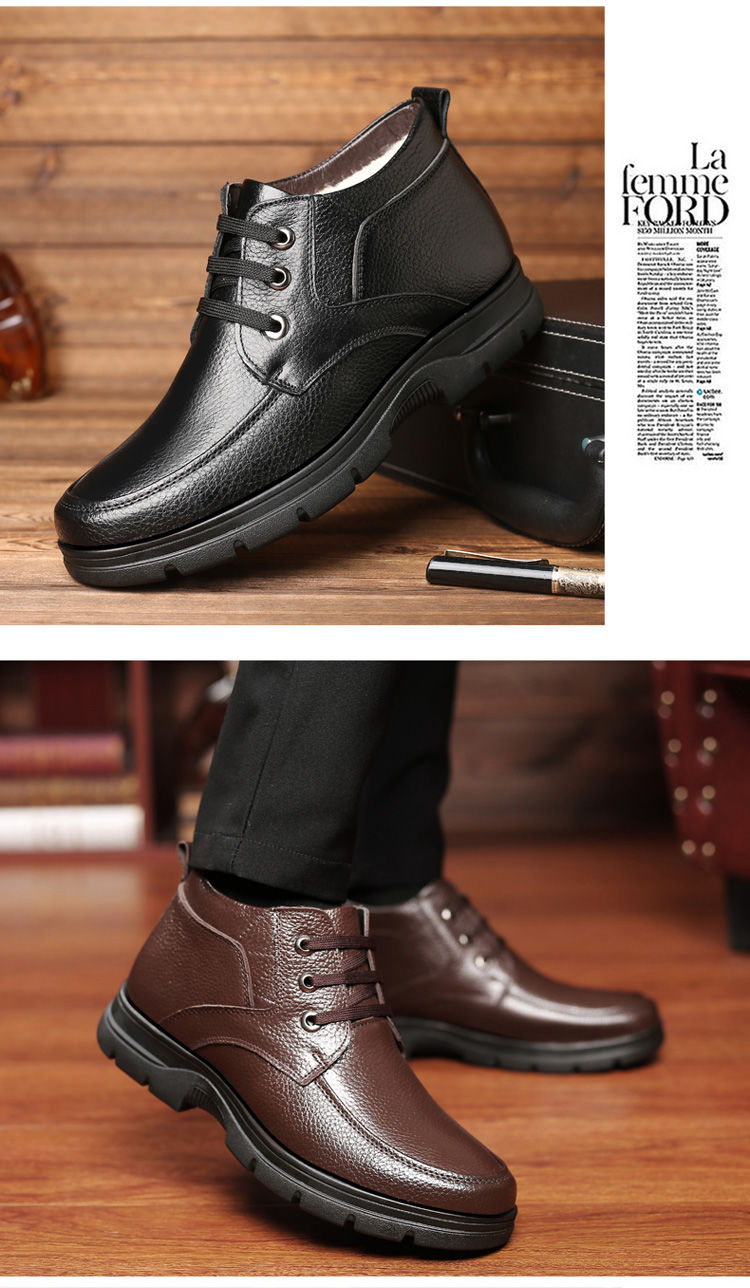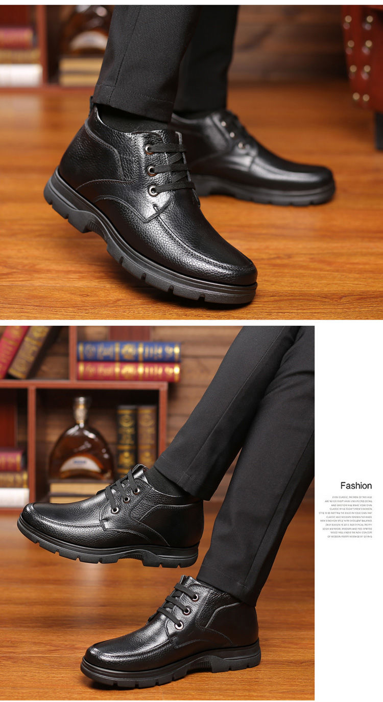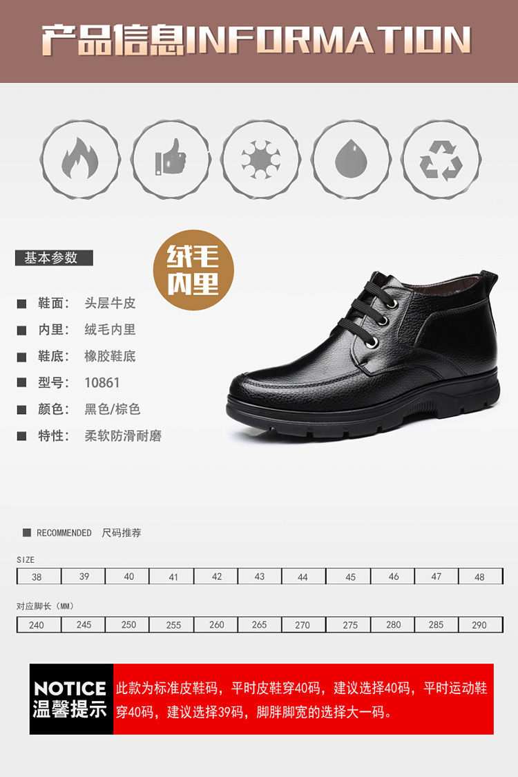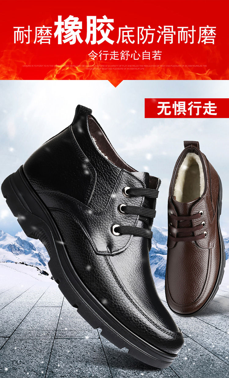 男冬季中年高帮棉鞋 休闲皮鞋 加绒保暖爸爸鞋中老年皮鞋
