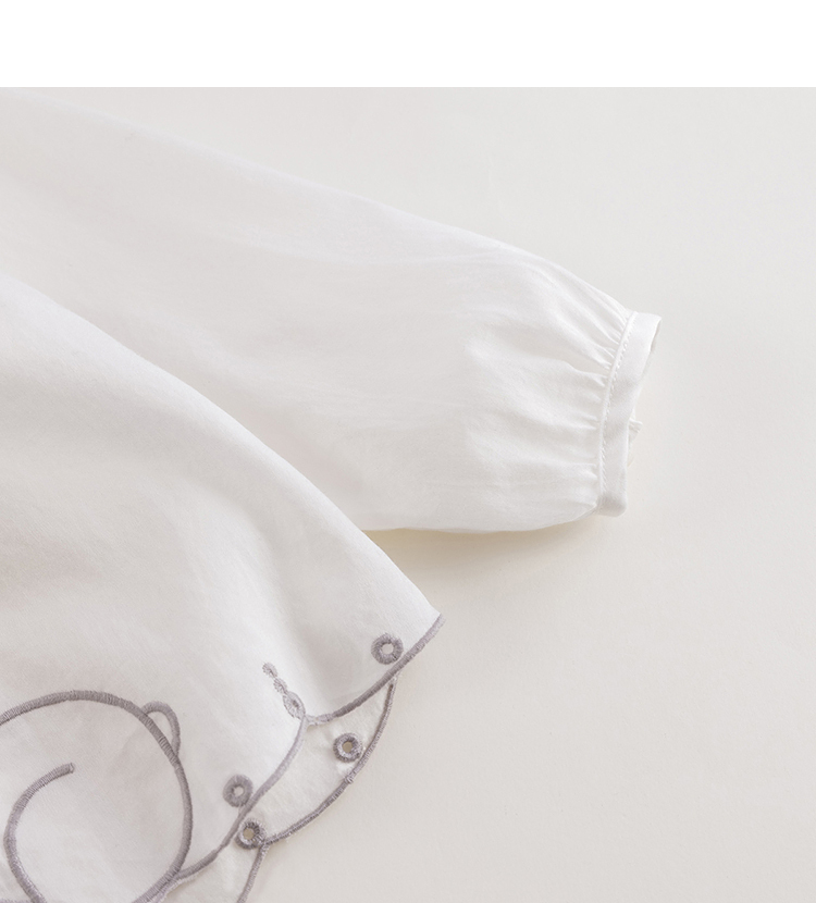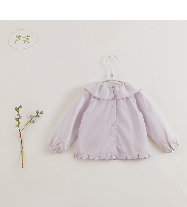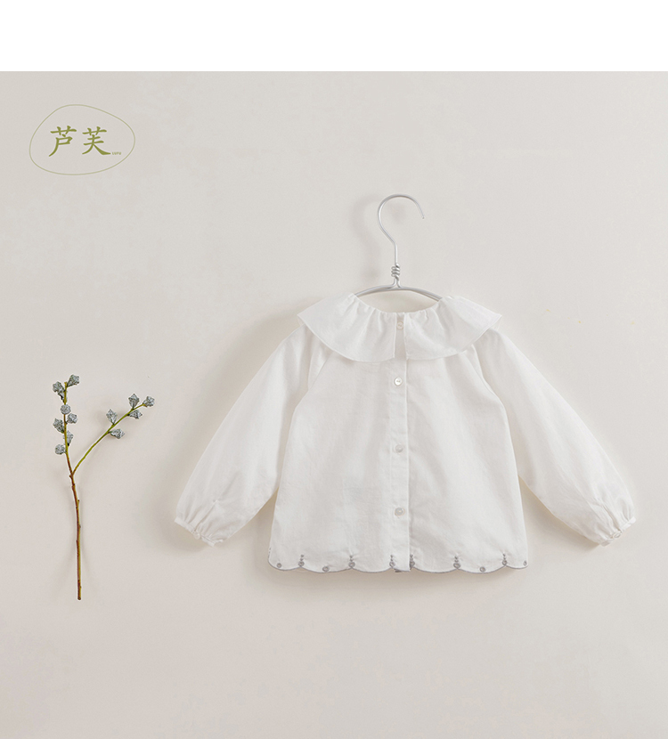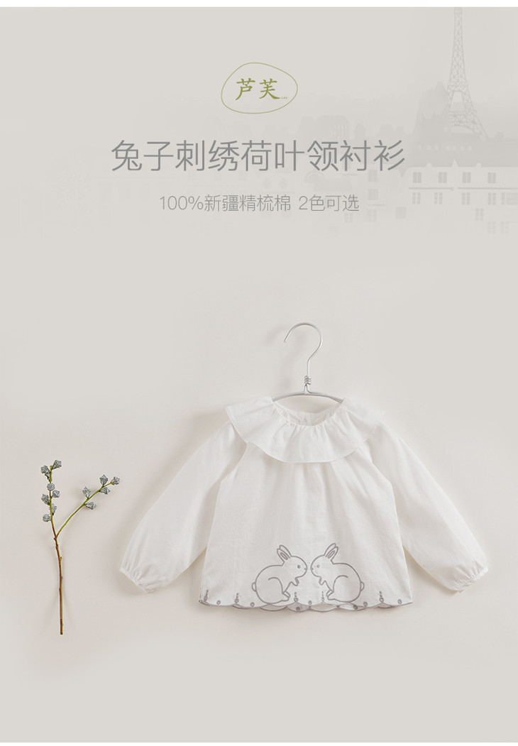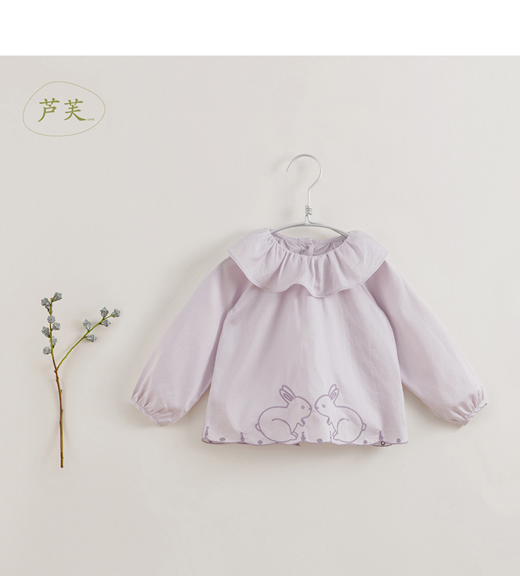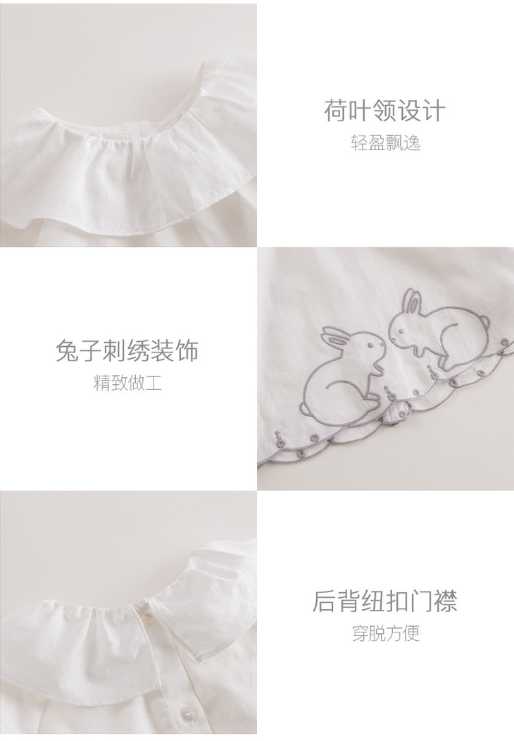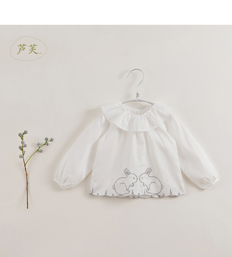 【马克珍妮 芦芙】春装新款 小兔子刺绣荷叶领纯棉衬衫230092