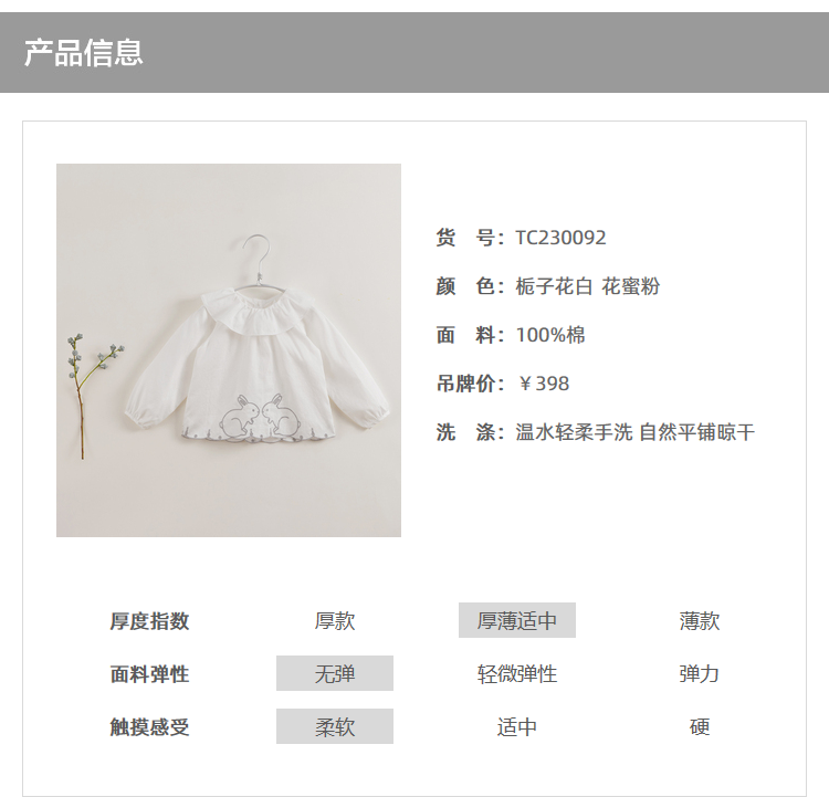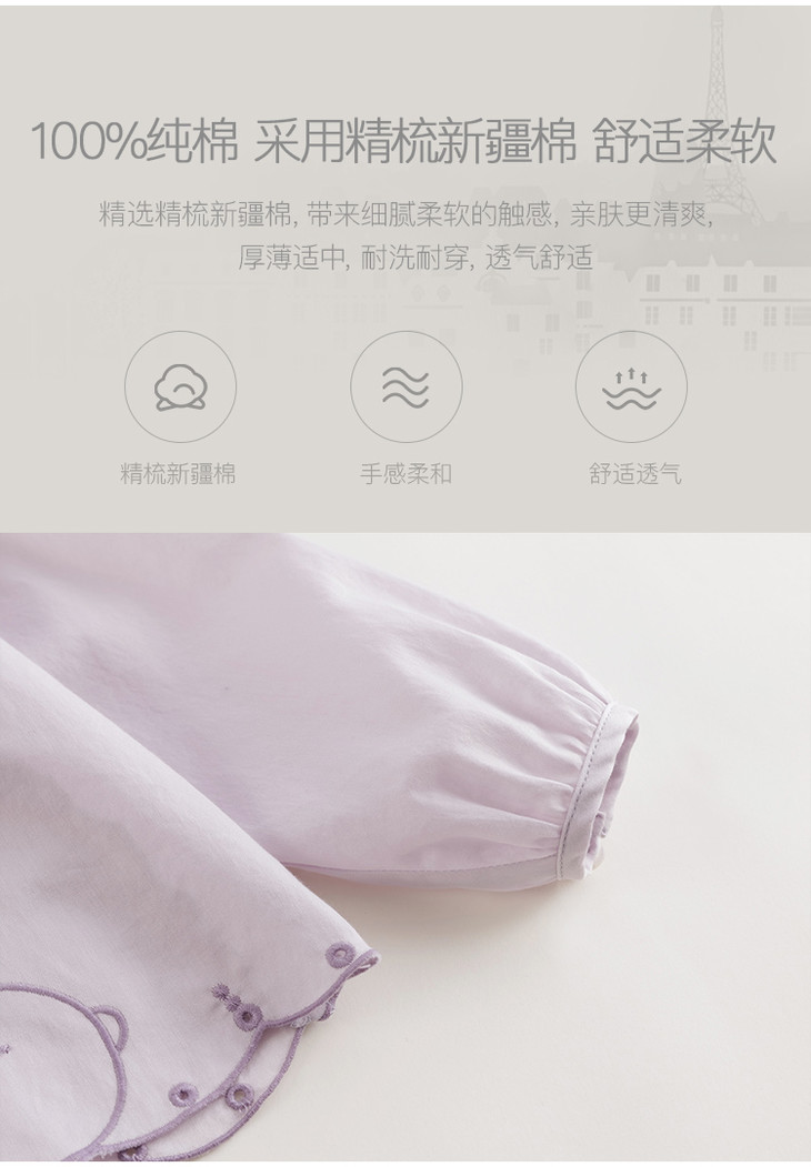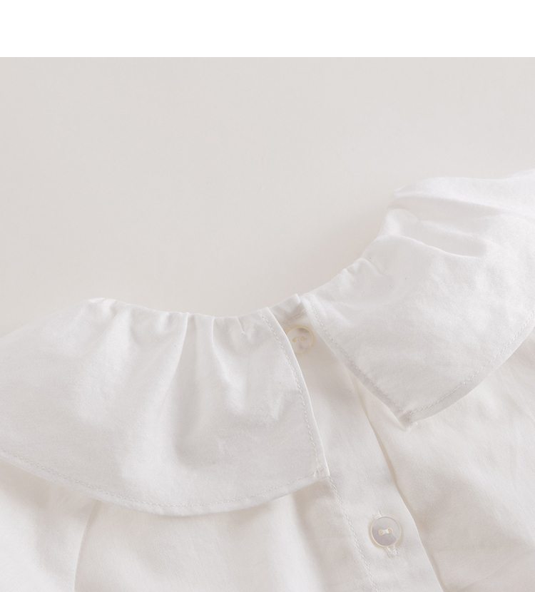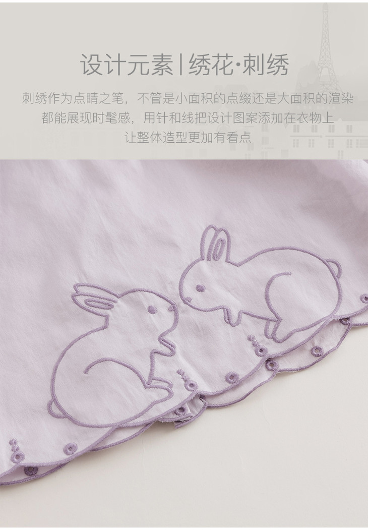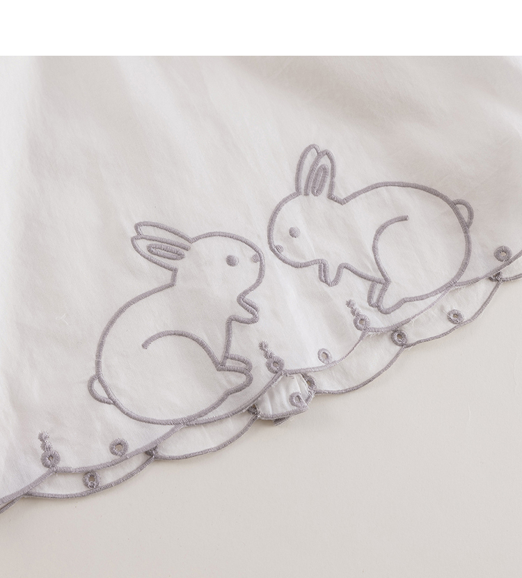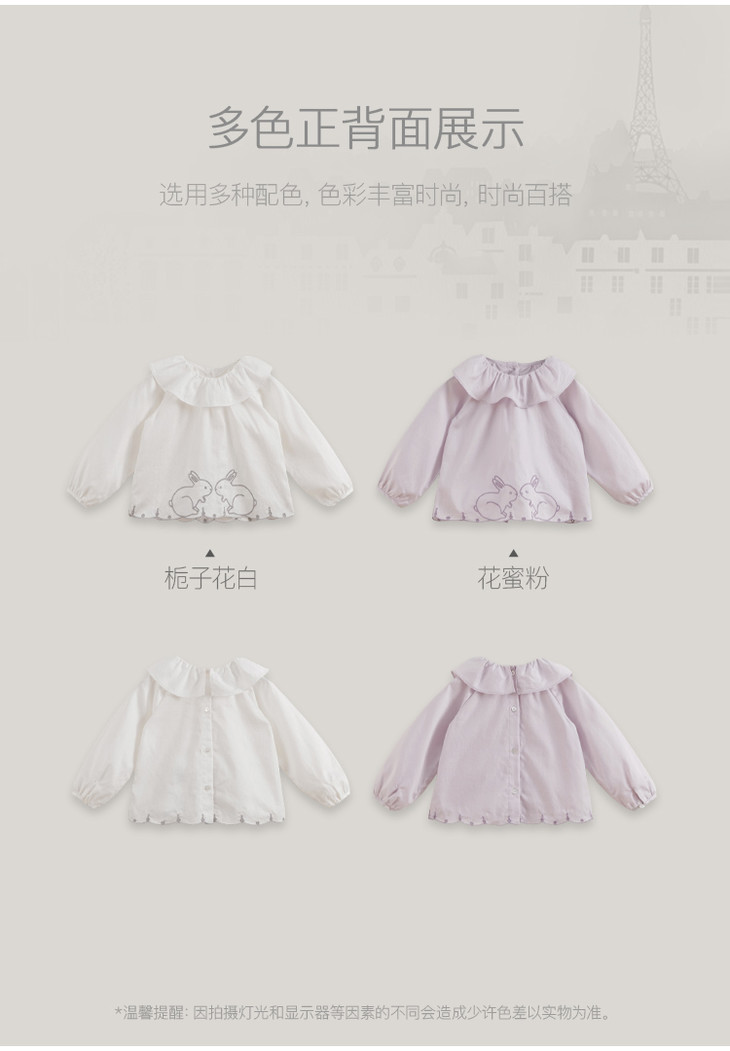 【马克珍妮 芦芙】春装新款 小兔子刺绣荷叶领纯棉衬衫230092