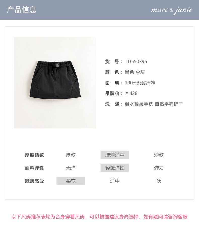 马克珍妮女童超轻速干短裙半身裙 儿童裙裤2025年春装新款550395