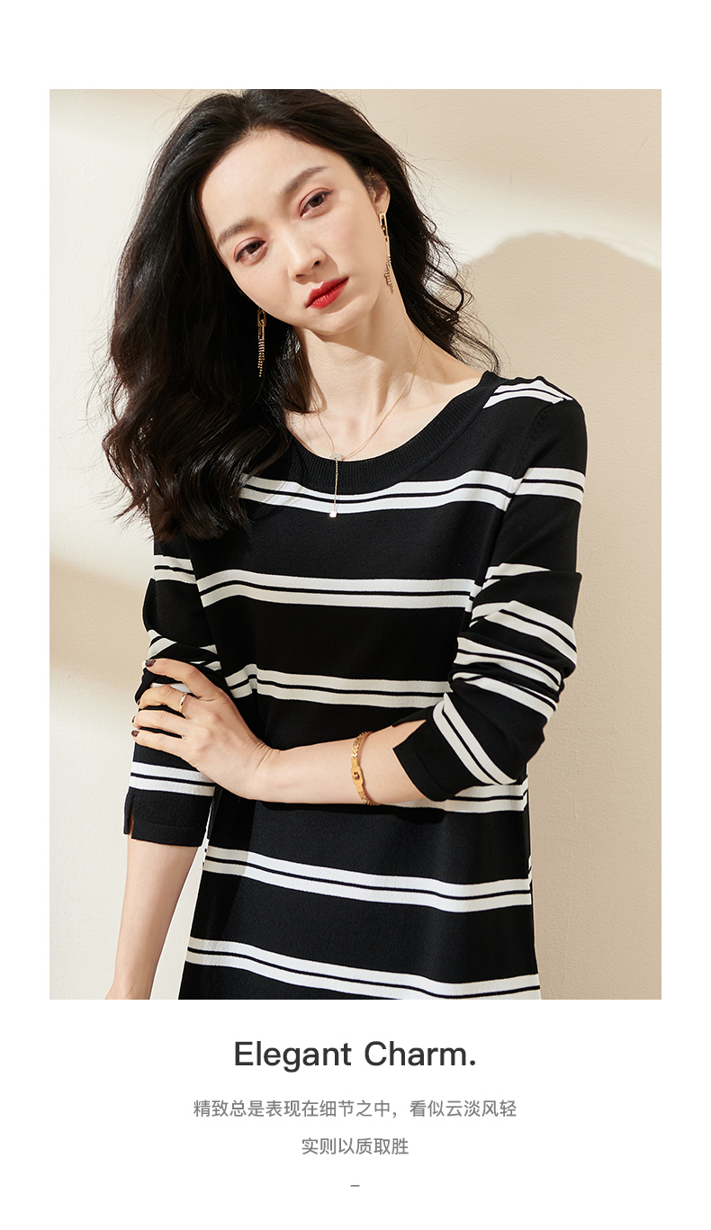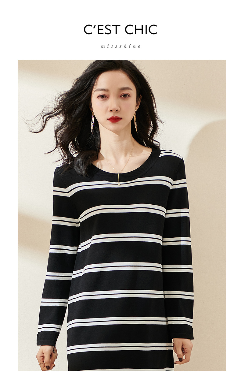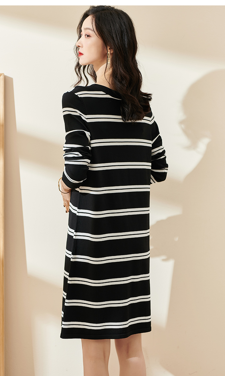 剩M/L 米思阳2024秋季新款休闲时尚条纹中长款T裙宽松九分袖连衣裙0534