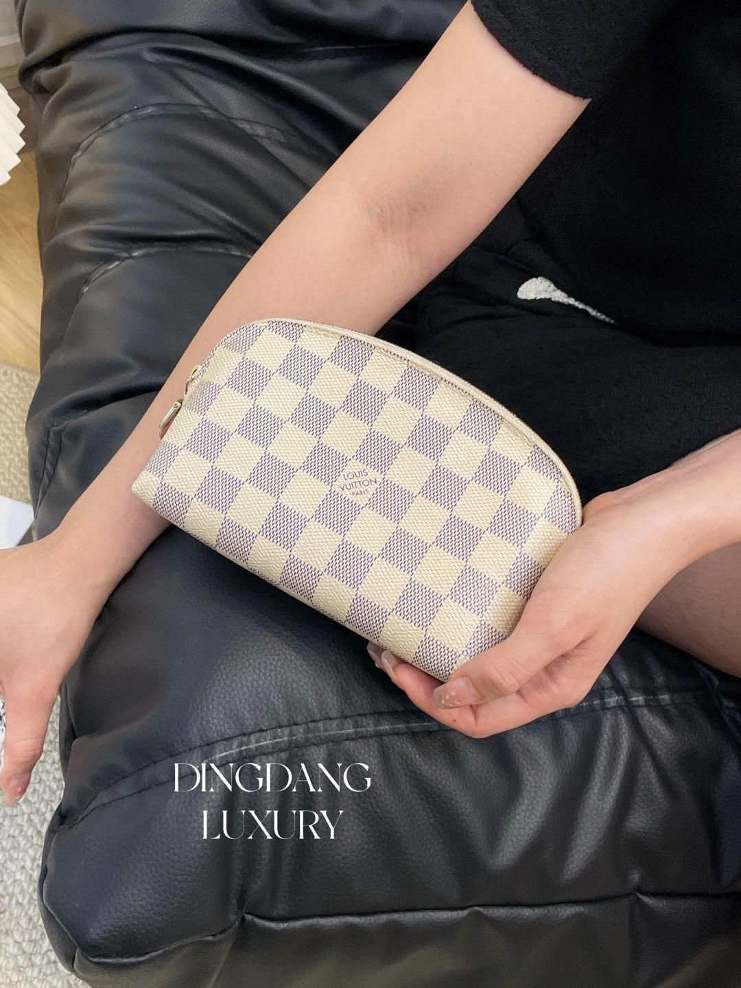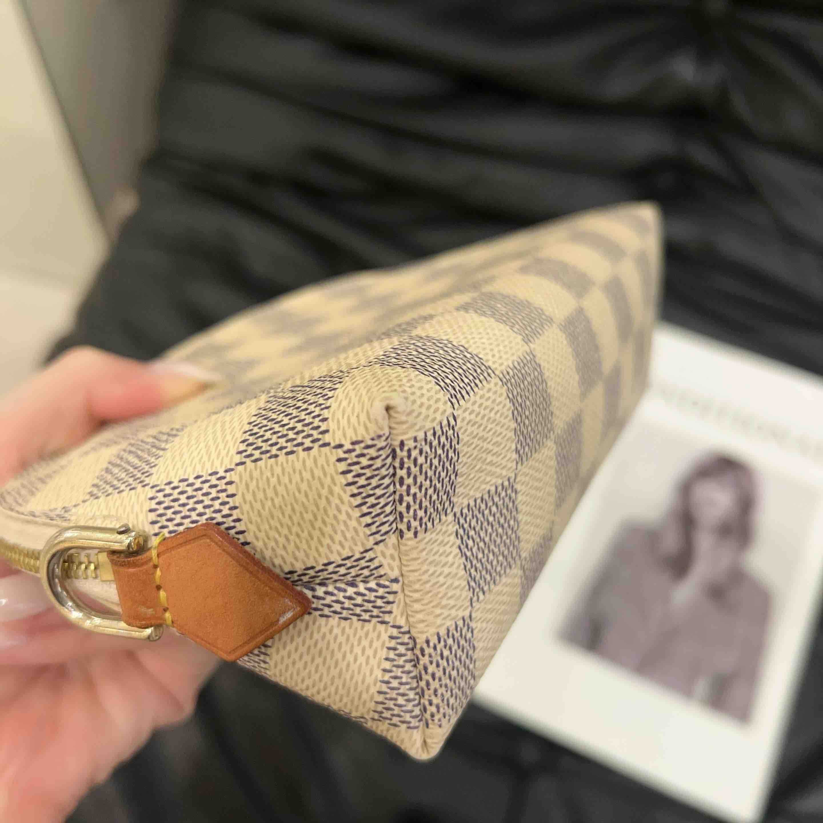 正品二手 LV 白棋盘格 手拿 化妆包💽 93新 17*12。金属和拉链布位置正常使用感。改造后秒变小挎包。