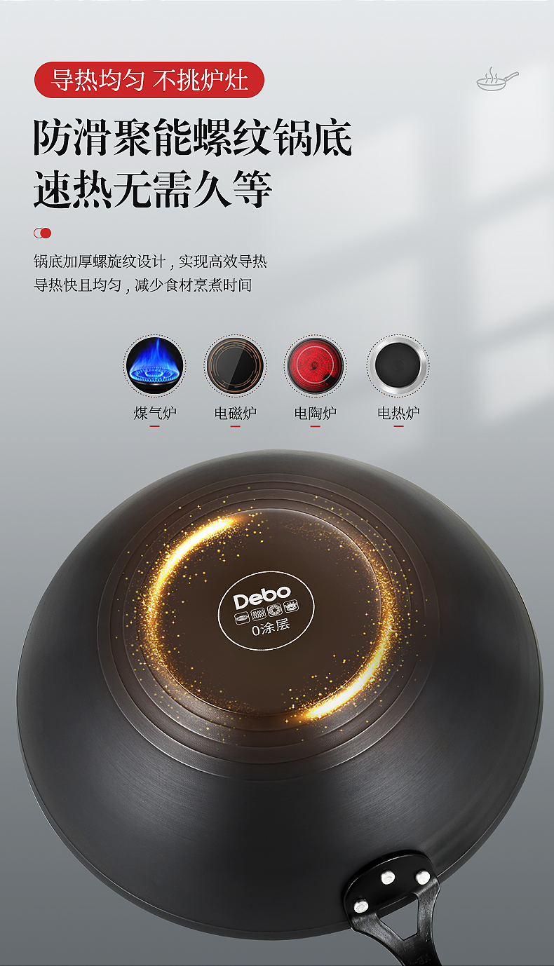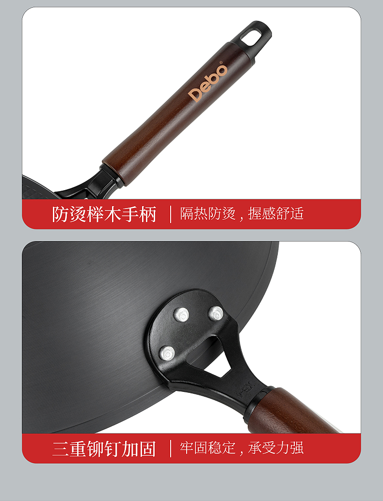 Debo德铂伊瓜因中式炒锅无涂层铁锅炒锅