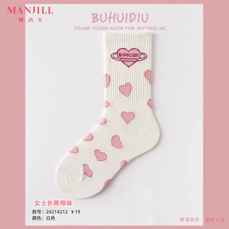【拍3双39元】熳洁儿 夏季女士爱心棉袜针织长筒袜韩系可爱少女心24214212