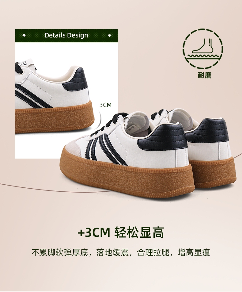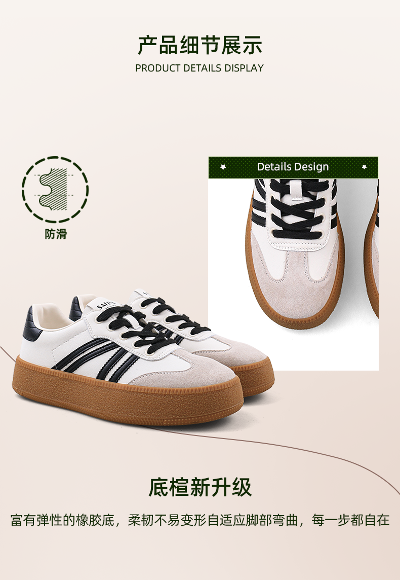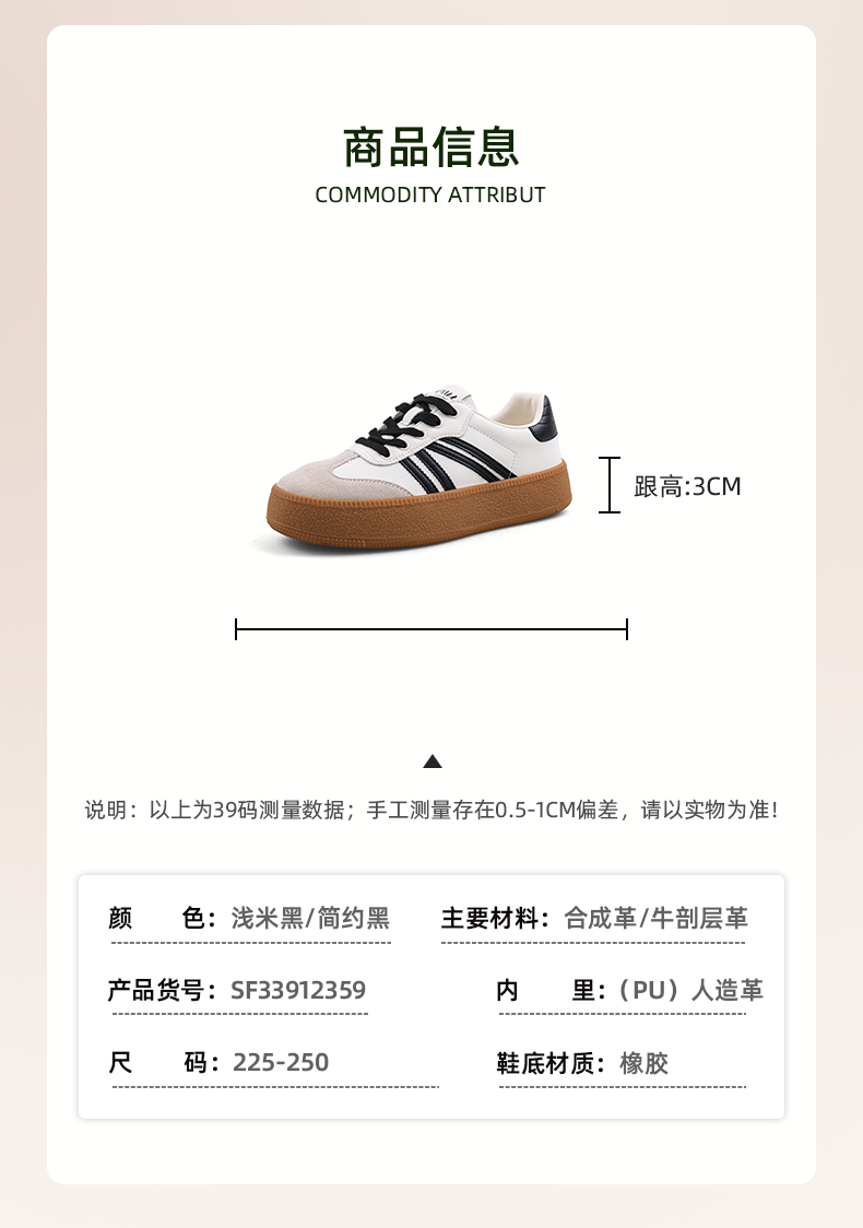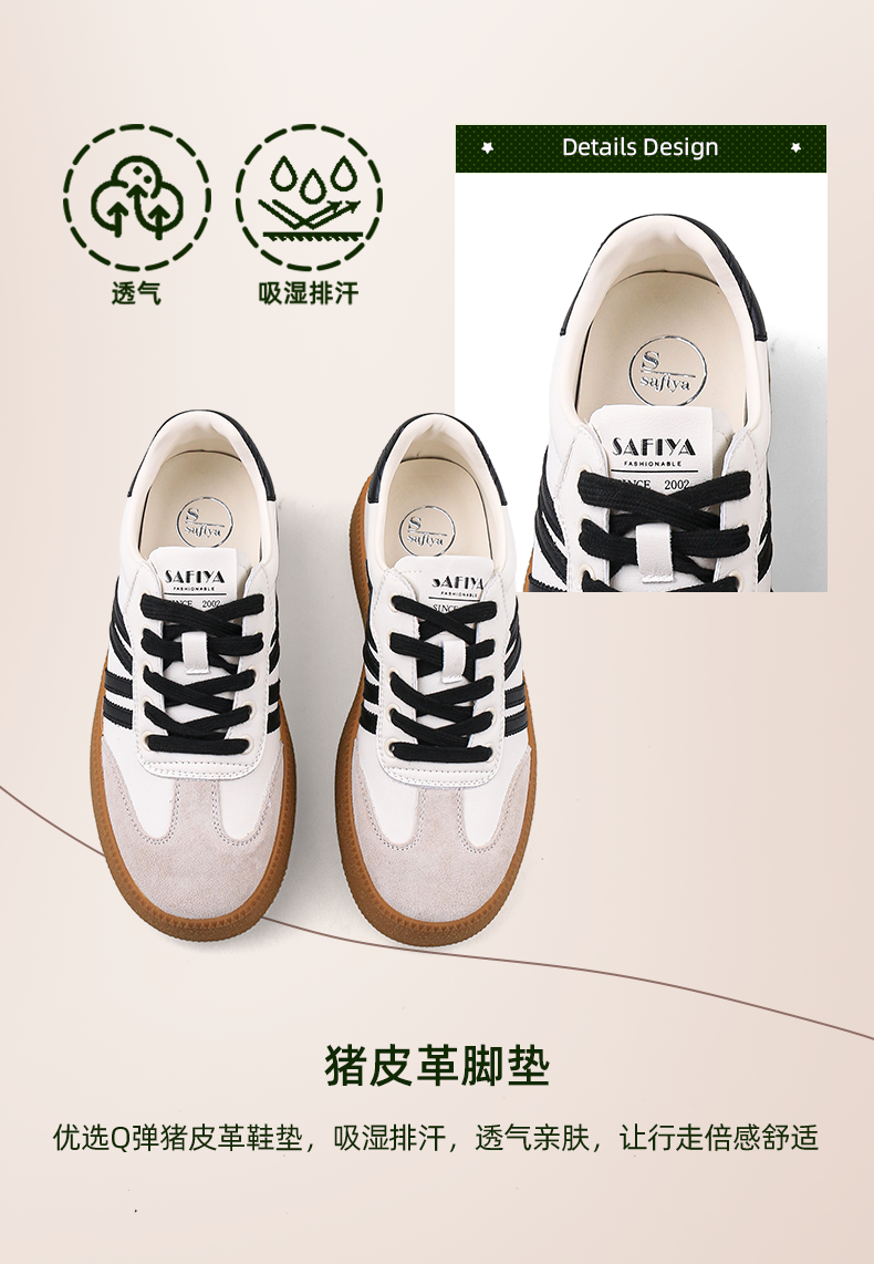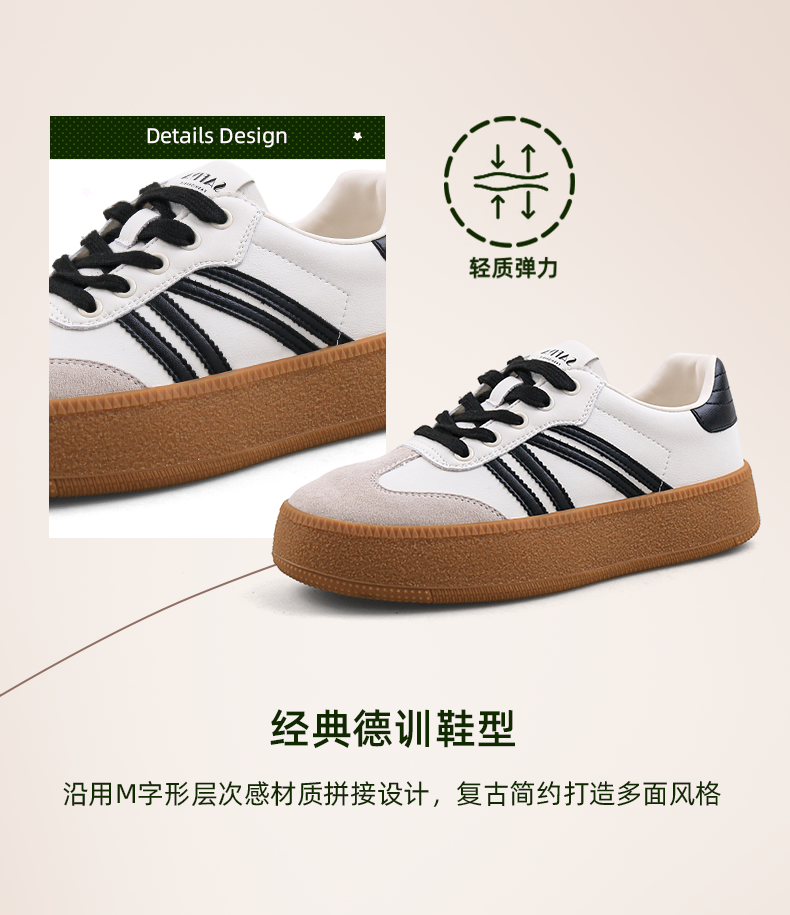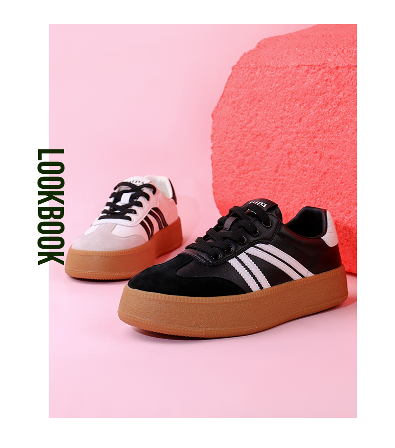 超值精选 | Safiya/索菲娅2023秋冬网红厚底百搭条纹系带休闲复古德训鞋 SF33912359