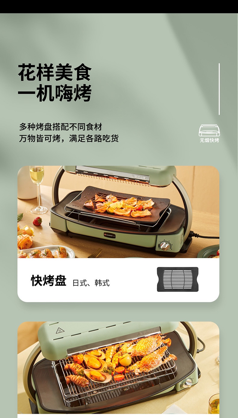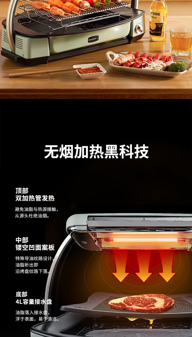 海氏V6无烟烤肉盘 电烤盘电烤炉家用烧烤炉烤肉炉烤串机照烧快烤炉