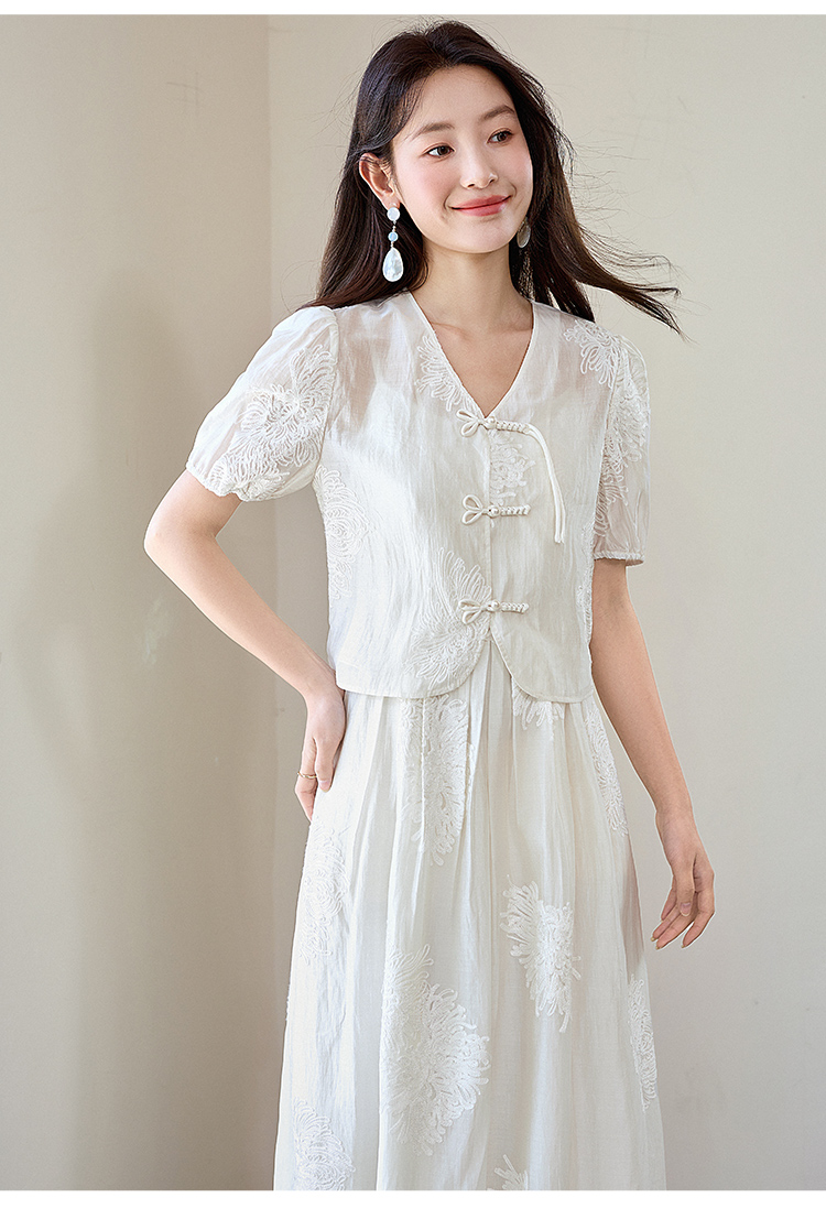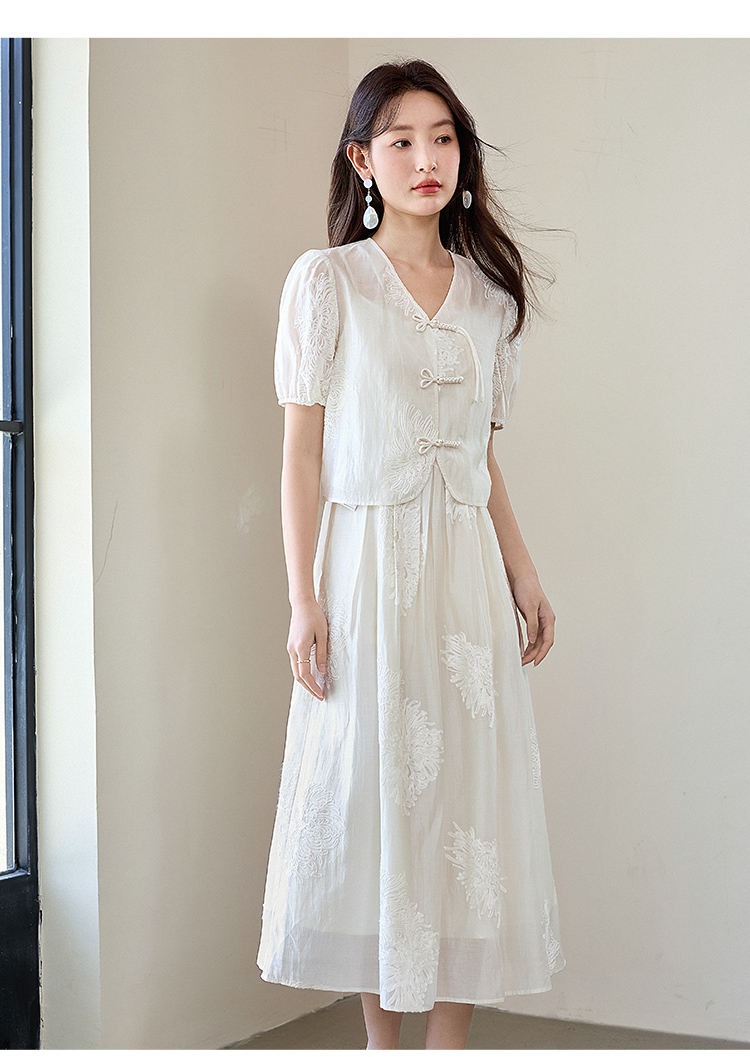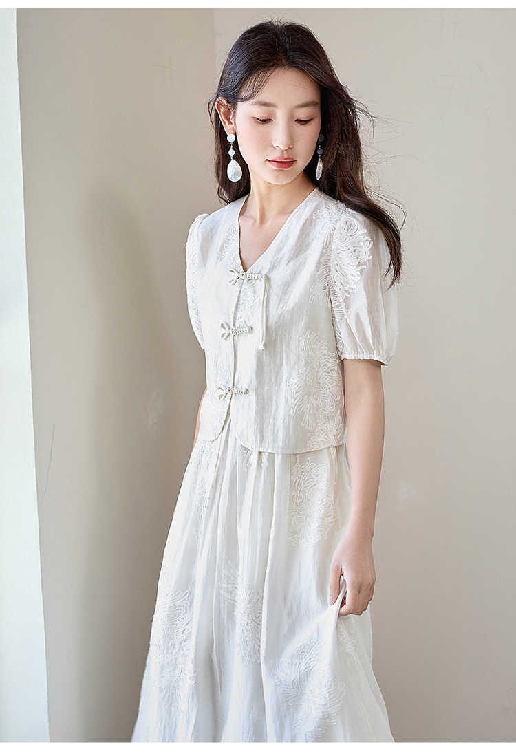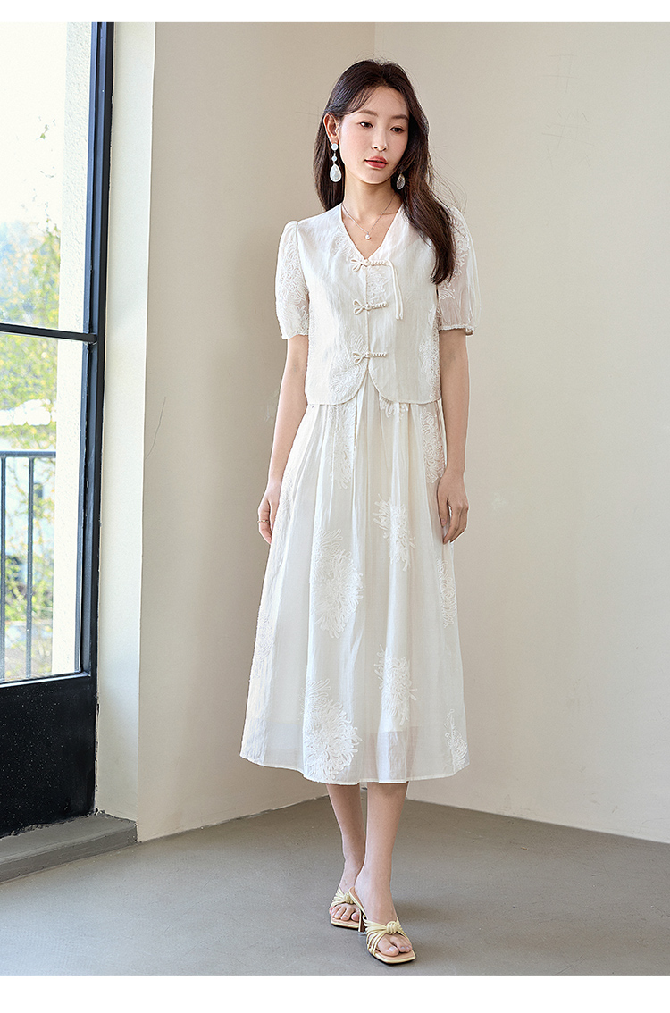 【专属特价】熙世界天丝新中式国风套装裙夏女装盘扣衬衫吊带连衣裙子两件套