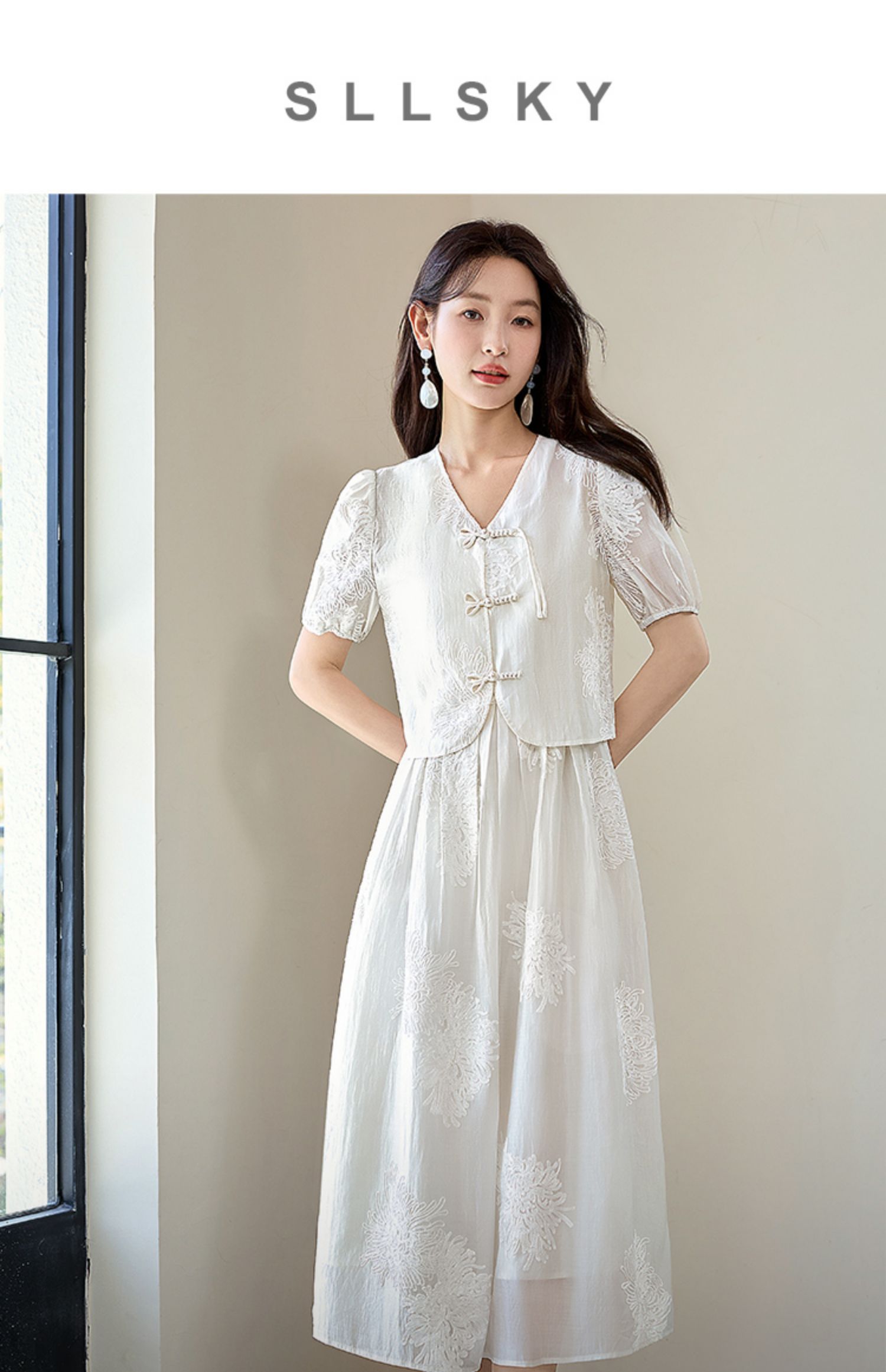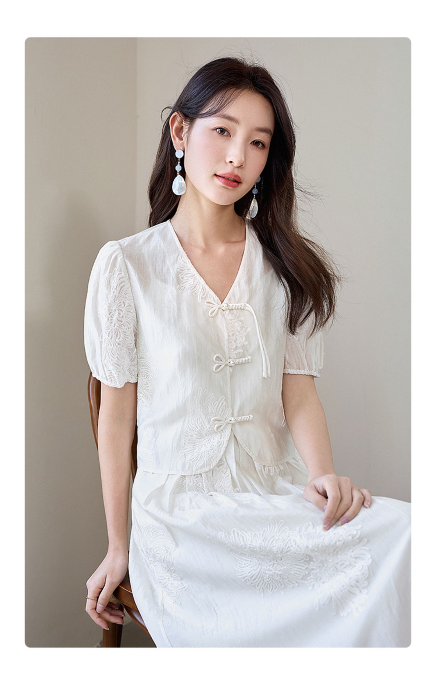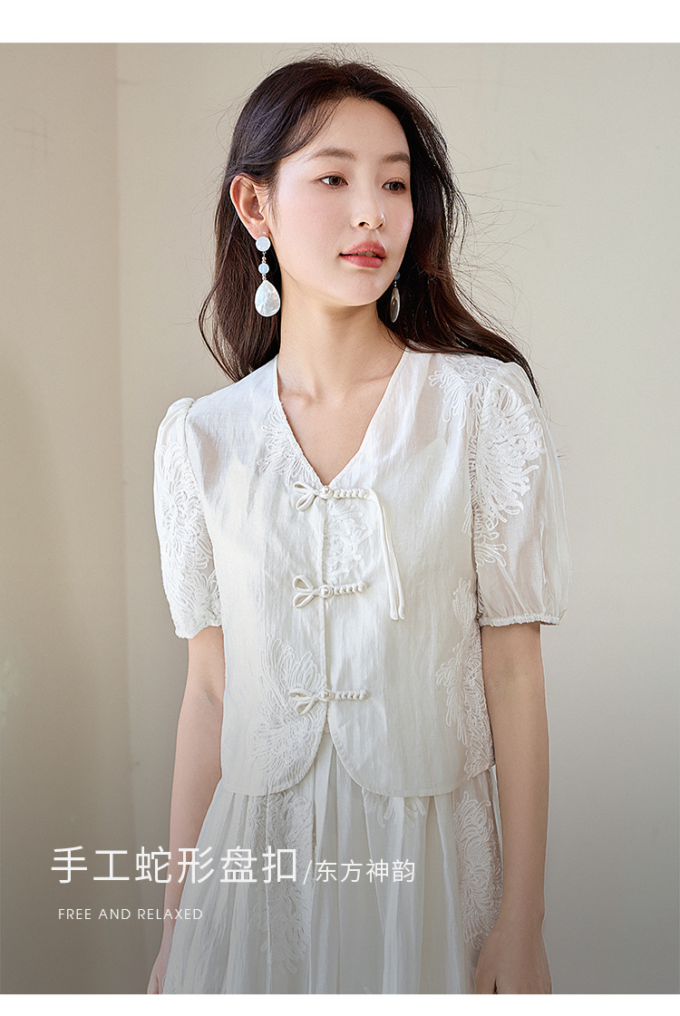 【专属特价】熙世界天丝新中式国风套装裙夏女装盘扣衬衫吊带连衣裙子两件套