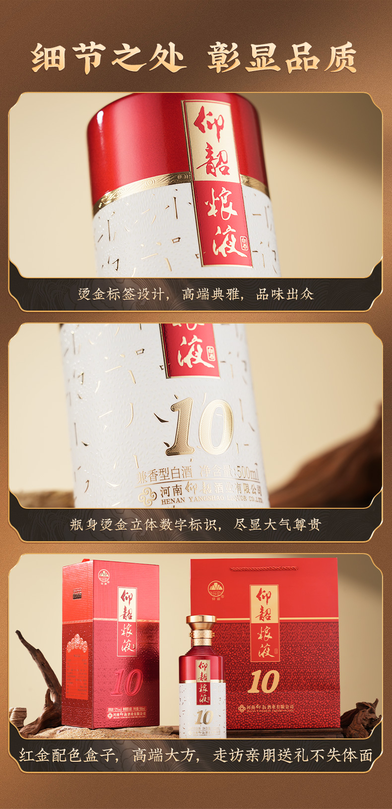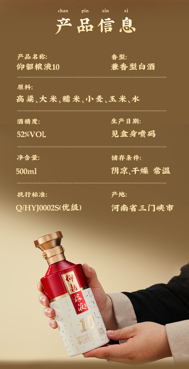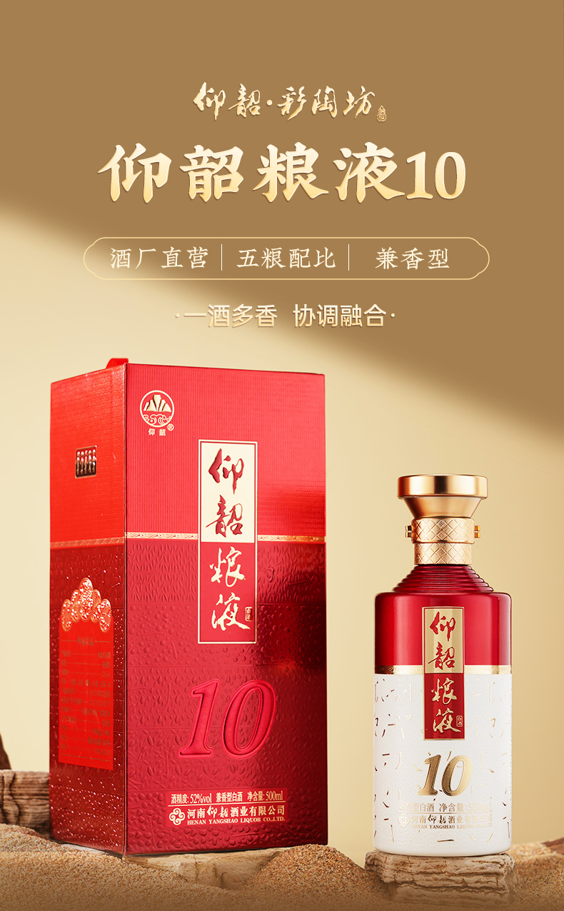仰韶粮液10 白酒整箱6瓶 52度 500ml 兼香型白酒 纯粮食酒 整箱六瓶
